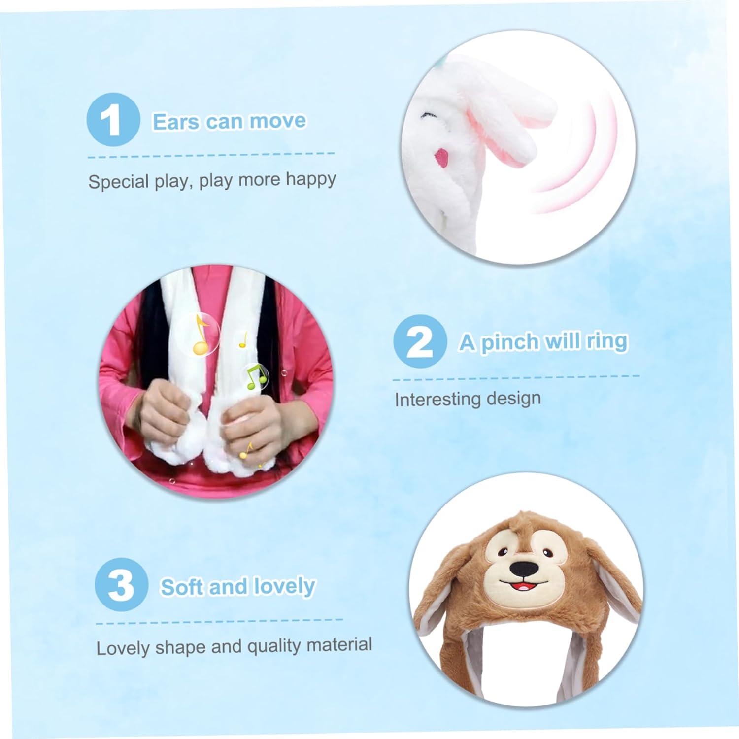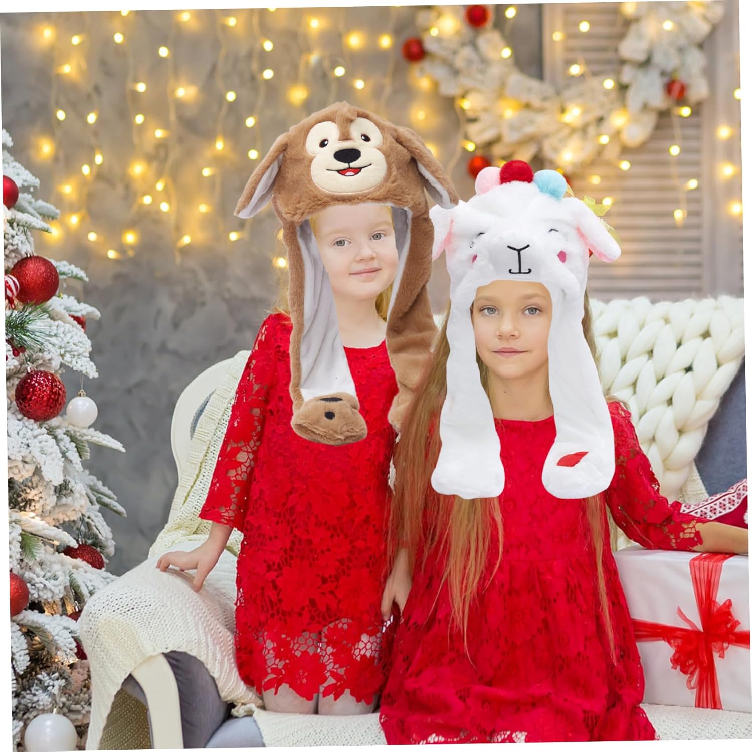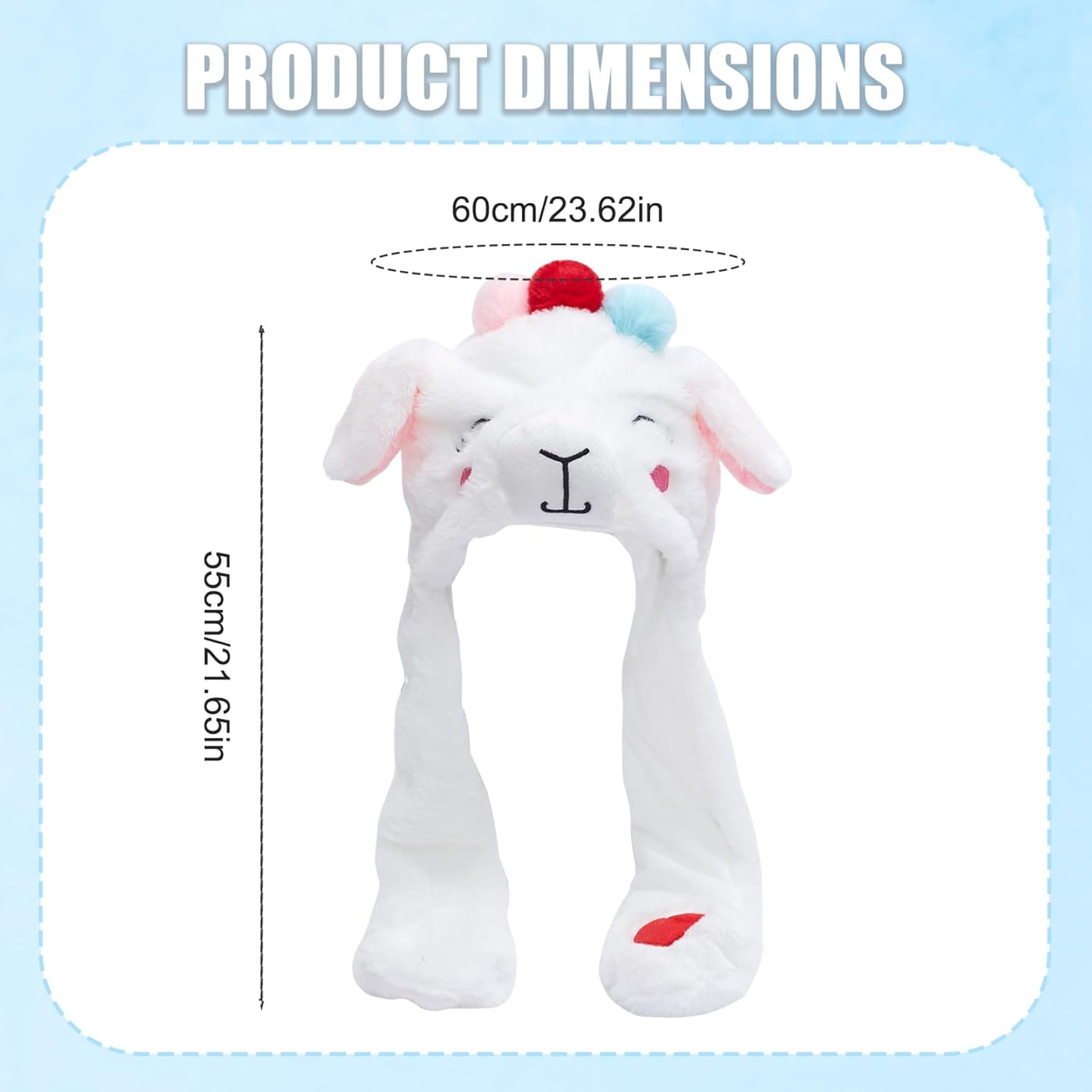 Cappello da animale con orecchie mobili, cappello con orecchie mobili, simpatico cappello da pecora con orecchie mobili, morbido cappello divertente in peluche con zampe per regali di compleanno natalizi invernali unisex Descrizione: Stai al caldo e adorabile con questo simpatico cappello con orecchie mobili da pecora!. Realizzato in morbido materiale soffice, questo cappello stravagante è dotato di divertenti orecchie interattive che si muovono quando stringi le zampe, rendendolo l'accessorio perfetto per l'inverno, le feste di Natale o i compleanni.. Progettato per bambini e adulti, questo cappello giocoso porta gioia e calore ovunque tu vada.. Non è solo un accogliente cappello invernale ma una divertente idea regalo per ogni occasione.. Caratteristiche:.. Cappello con orecchie mobile.. -Colore: bianco, marrone.. -Materiale: poliestere.. -Taglia:.. Circonferenza della testa: circa 60 1 cm / 23,62 pollici.. Lunghezza: circa 55 cm / 21,65 pollici.. Nota: misurazione manuale, si prega di consentire lievi errori sulla dimensione.. I colori possono presentare una leggera differenza a causa dei diversi display.