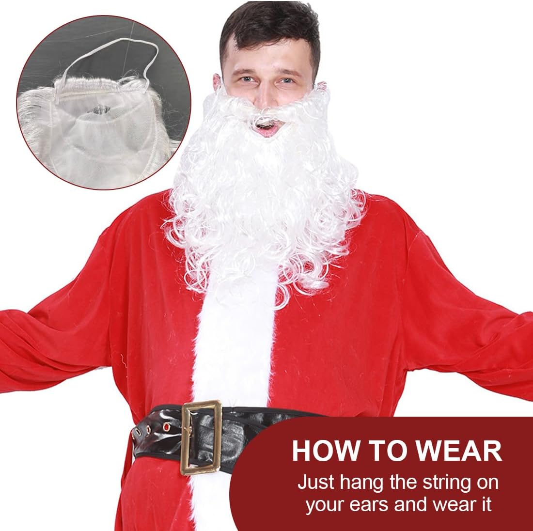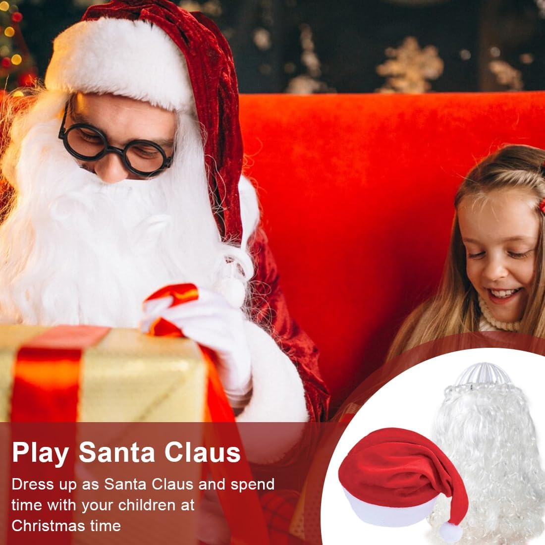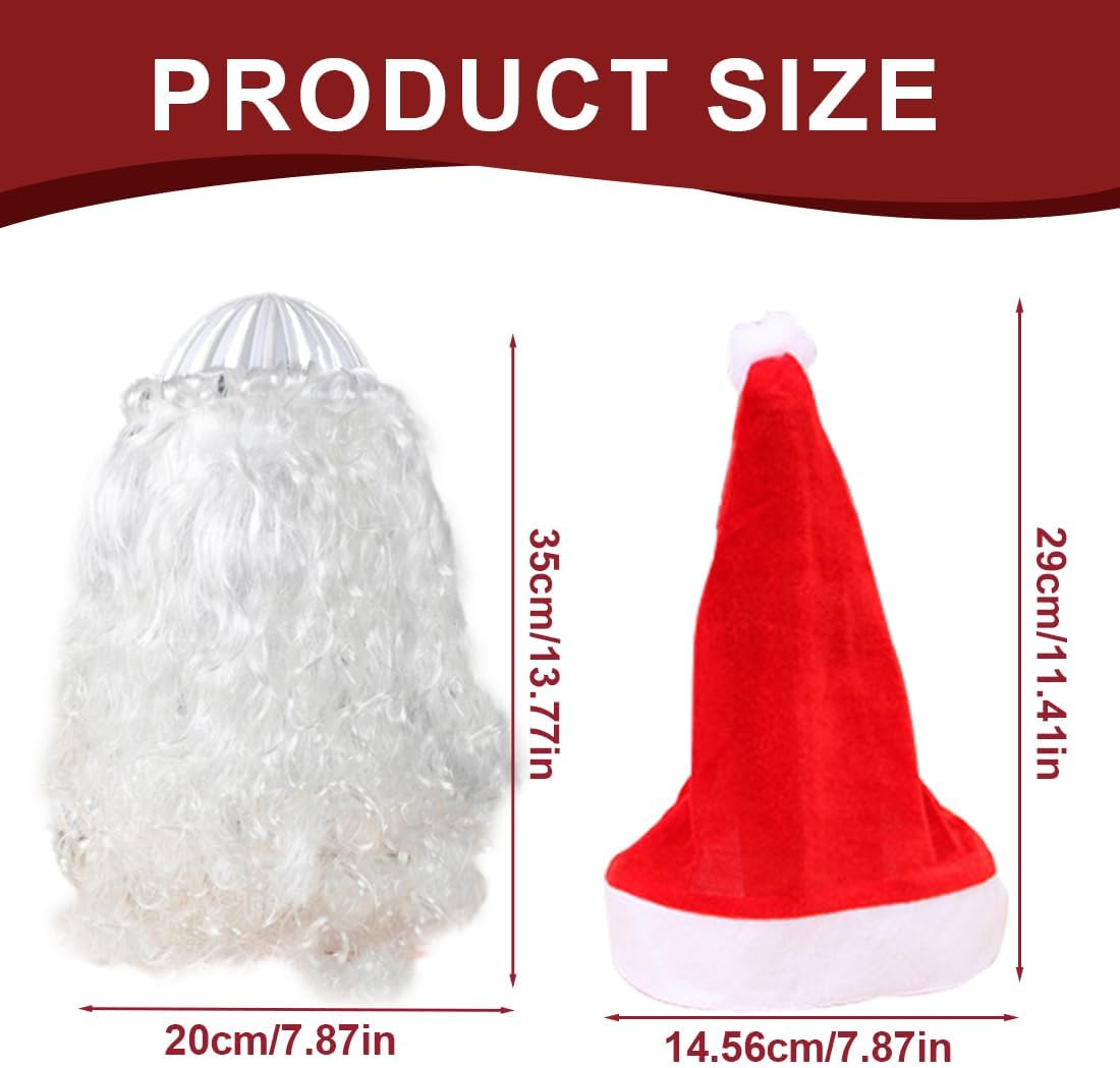 Dimensioni: 1 barba da Babbo Natale da 120 g e cappello da Babbo Natale da 20 g inclusi Design: Classico stile natalizio, ti permette di giocare a Babbo Natale in modo realistico Materiale: Realizzato in cotone e poliestere di alta qualità, resistente e facile da pulire Applicazione: Perfetto per giocare a Babbo Natale, adatto per Natale, cosplay, feste Attributi del regalo: Con una forte atmosfera natalizia, è un prodotto indispensabile per Natale, sia per uso personale che come regalo per i tuoi cari, genitori, amici, ecc.