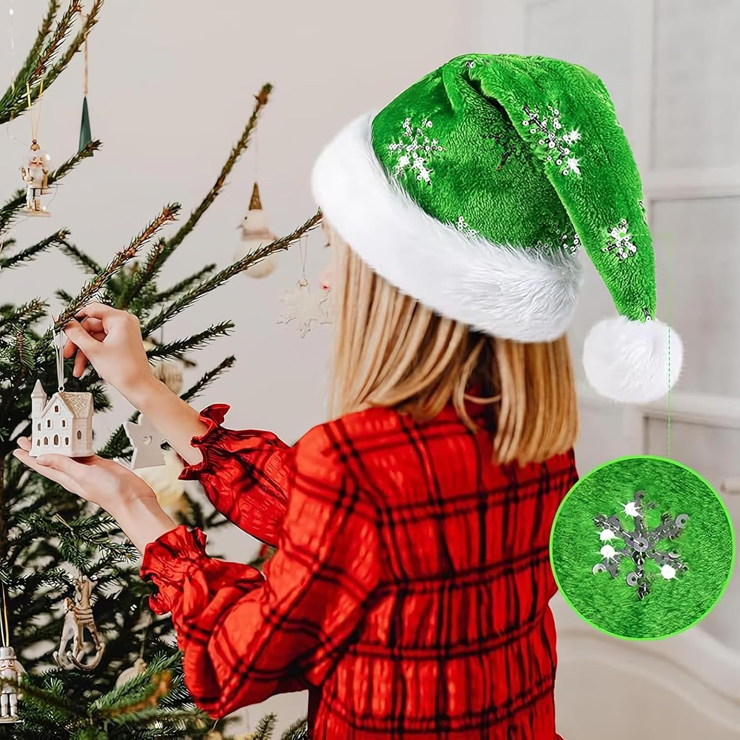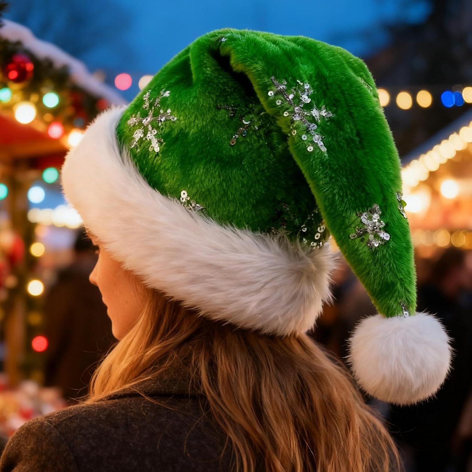 Descrizione del prodotto Il peluche cappello cosplay di Babbo Natale per adulti è realizzato in morbido velluto in una festosa tonalità verde, decorato con accattivanti paillettes a forma di fiocco di neve, che lo rendono la scelta ideale per donne e adolescenti che partecipano a feste o celebrazioni. Questo accessorio si abbina perfettamente ai costumi cosplay per eventi come balli in maschera, carnevali e feste di Capodanno, apportando un tocco vibrante a spettacoli e servizi fotografici. Progettato per migliorare il tuo look festivo, questo berretto in peluche dona fascino a ogni celebrazione senza compromettere lo stile o il comfort, facendoti risaltare nelle riunioni stagionali e nelle occasioni a tema. Specifiche: Materiale: Velluto + Paillettes Dimensioni del prodotto: circa 47x31 cm/18,5x12,2 pollici Peso: Circa 100 g Lista imballaggio: 1*Cappello da Babbo Natale Nota: A causa delle diverse impostazioni di illuminazione e schermo, il colore dell'articolo potrebbe essere leggermente diverso dall'immagine. A causa delle diverse misurazioni manuali, si prega di consentire una differenza di 1-2 cm. Avviso di sicurezza Non applicabile