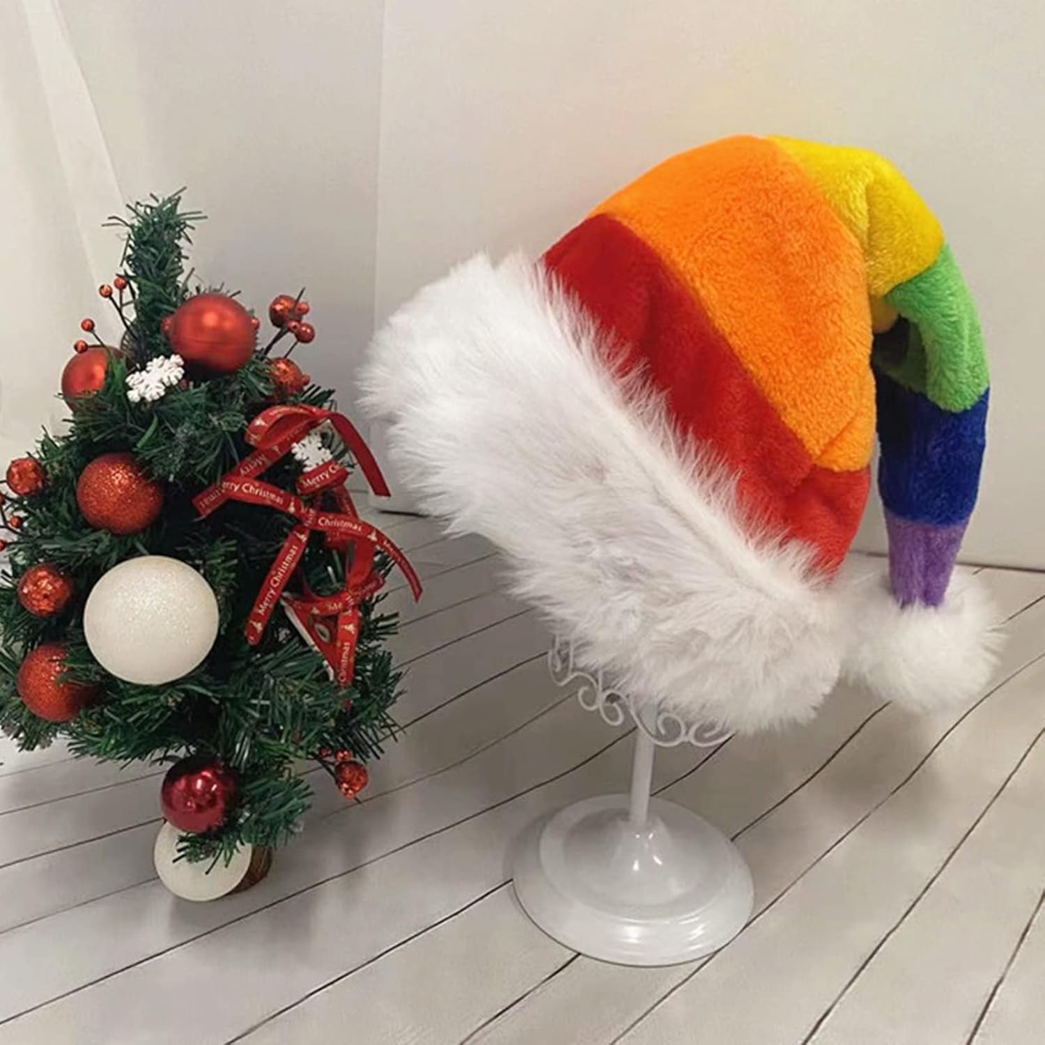 Morbido, confortevole irritazione dei capelli o sudorazione! Lavabile a mano, non allergico per la tua famiglia Il cappello di Natale la maggior parte degli adulti, donne uomini. Regali Il cappello di Natale porta un bel periodo natalizio interessante La fodera ispessita del cappello di Natale mantiene il freddo caldo. assorbente sudore fodera assicura una sensazione confortevole che non si vergogna quando il dimagrimento. caldo anno benvenuto. Copricapo decorativo, costume per feste, piacevole e interessante, ottimo accessorio per Natale, cosplay, feste di compleanno, I cappelli natalizi del loro colore arcobaleno creativo devono essere lavati a mano sono super lunghi da indossare. La lavorazione assicura che i cappelli di Natale siano per molti anni