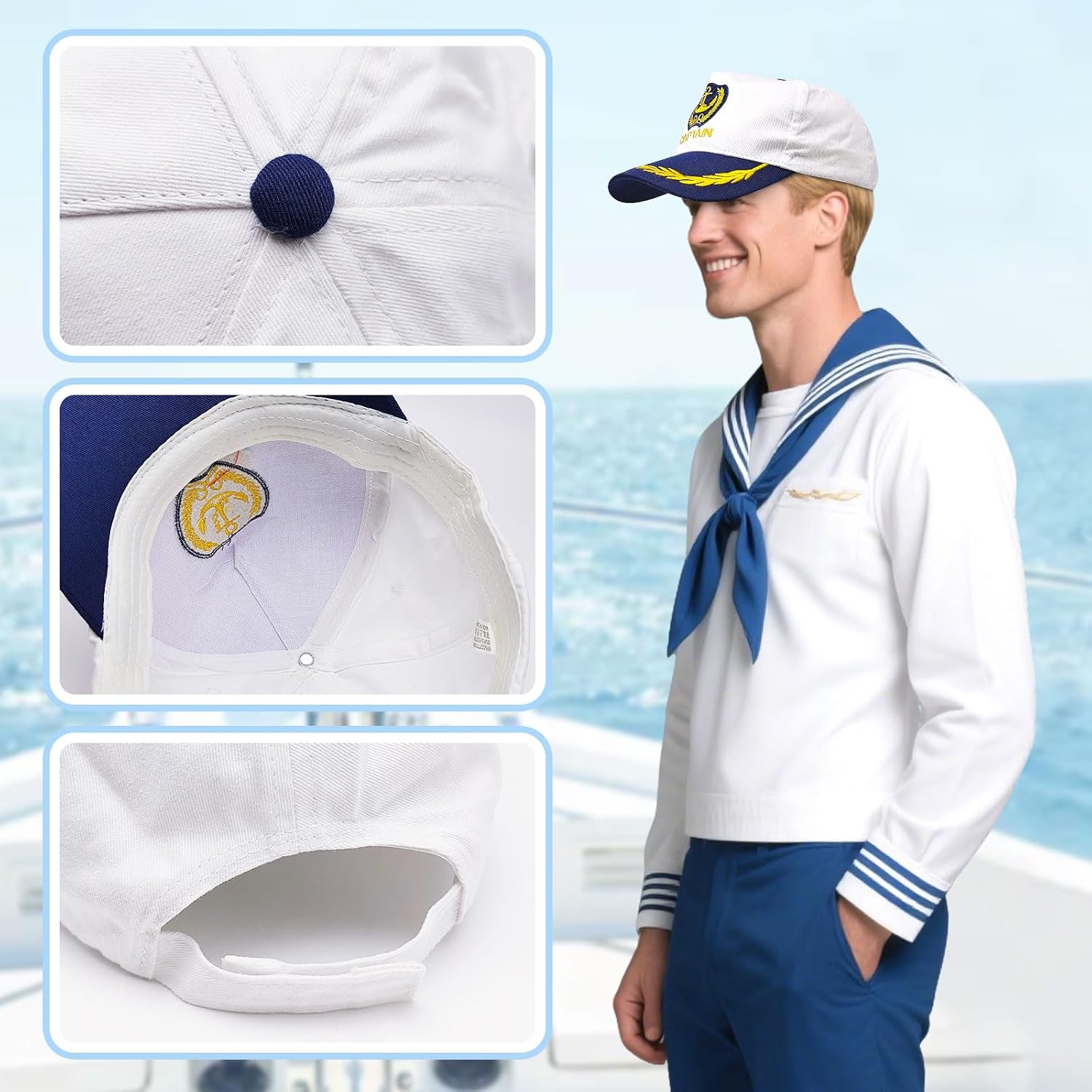 Descrizione prodotto Materiale: cotone. Colore: bianco. Contenuto della confezione: 1 cappello da baseball Capitan. Avviso di sicurezza No