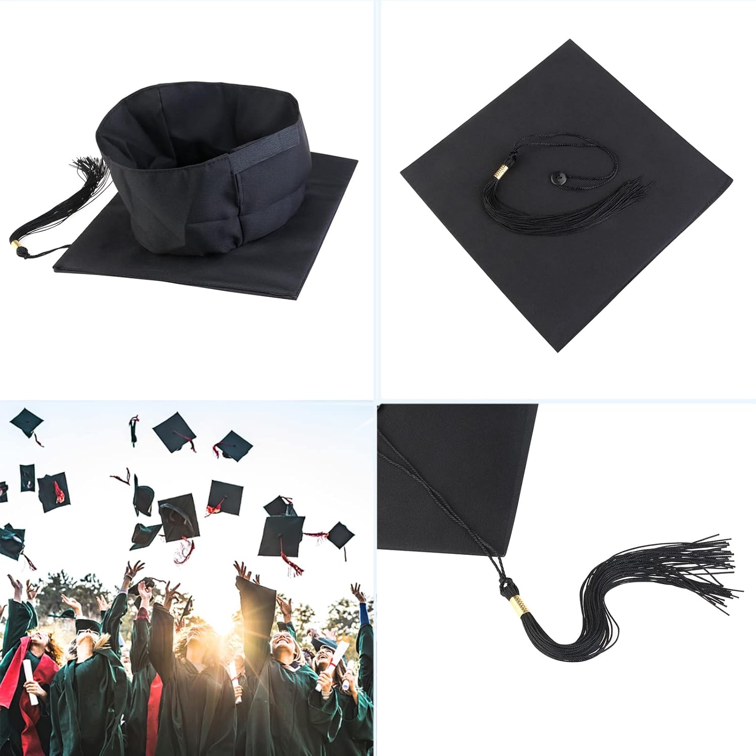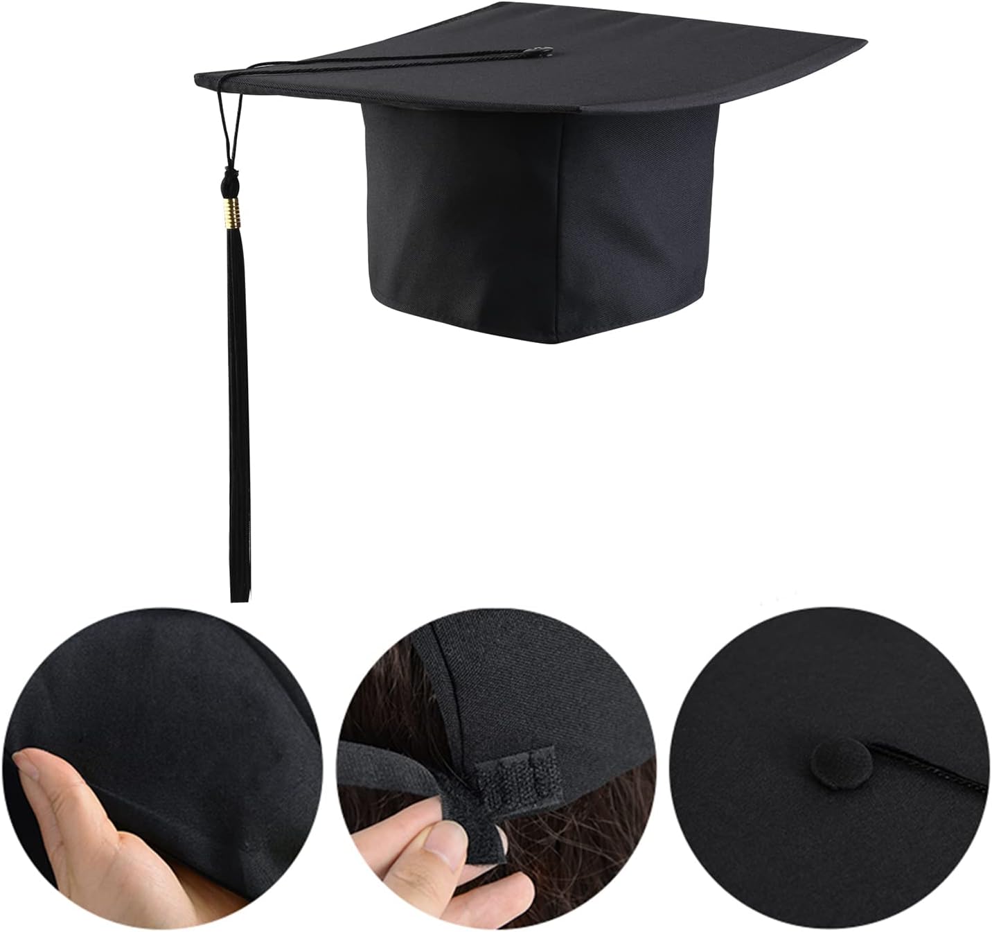 Il cappellino di laurea è un accessorio indispensabile per la festa di laurea. Può essere utilizzato come importante oggetto di scena per la fotografia il giorno della festa di laurea e può darti un'impressione indimenticabile. Il cappello di laurea è un simbolo di intelligenza e superiorità. Quando la nappa viene spostata da sinistra a destra, diventa più simbolica perché indica lo status ufficiale degli studenti come laureati. Il nostro cappello da professore è esattamente in linea con la lunga tradizione. Grazie alla regolazione della taglia, il cappello è ideale per uomini e donne. Specifica: Materiale: poliestere + plastica Colore nero Per le persone: unisex la confezione include 1 tappo di laurea X