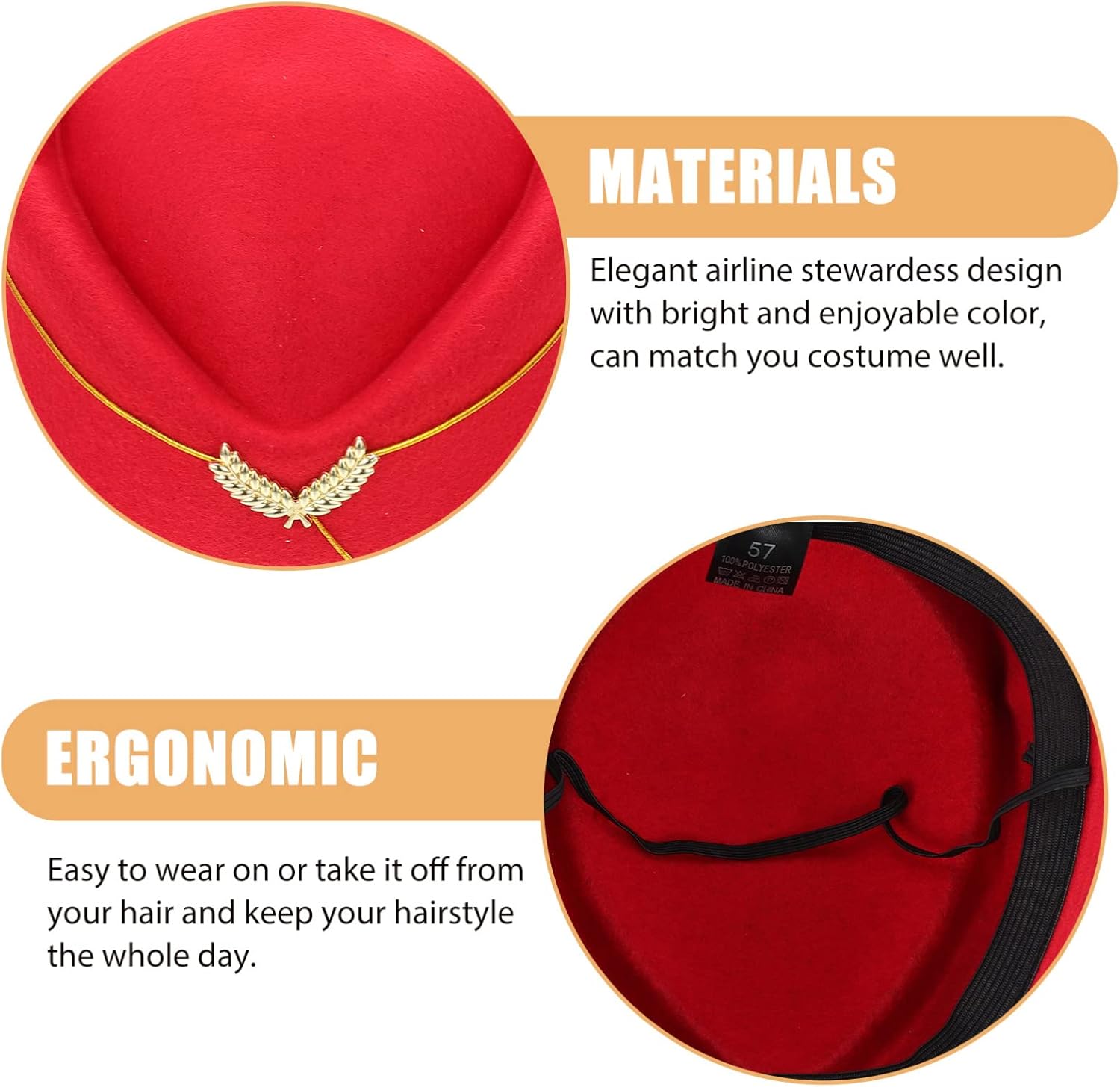 caratteristiche -materiale: tessuto pettinato, feltro -dimensioni: 20.00x18.00x7.50cm/7.86x7.07x2.95in(circonferenza cappello: 56-58cm/22.04-22.83in) - colore: rosso. pacchetto incluso 1 x cappello da assistente di