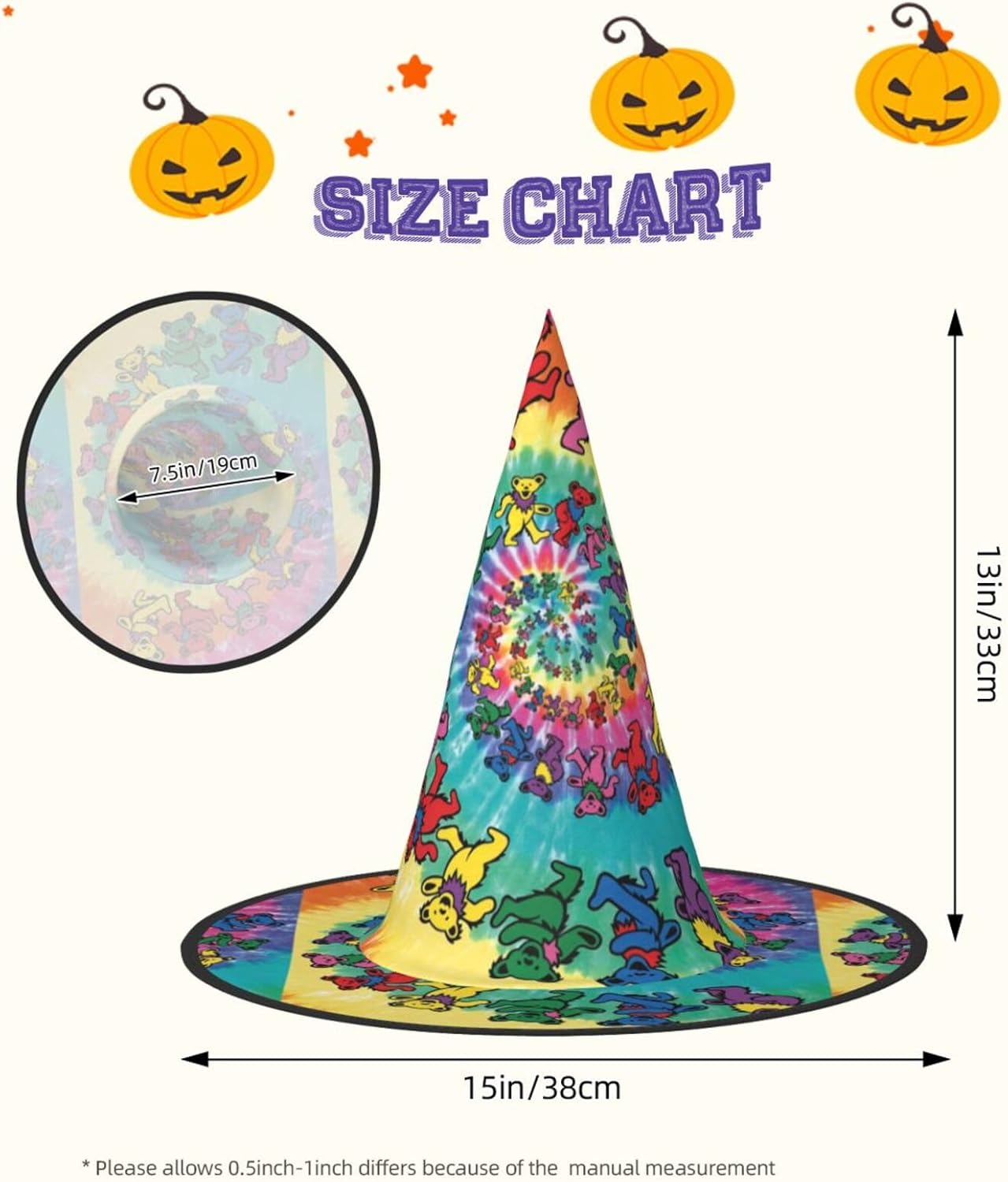 Trasforma la tua festa di Halloween o Carnevale con il nostro cappello da strega di Halloween, progettato per aggiungere stile e divertimento a qualsiasi evento a tema. Alto 33 cm con un diametro esterno impressionante di 38 cm, questo cappello non è solo accattivante ma anche incredibilmente versatile. Realizzato in tessuto Oxford, il cappello offre una vestibilità comoda e una qualità di lunga durata. Il design completamente stampato garantisce che si distingua da qualsiasi folla, mentre la struttura pieghevole consente un facile stoccaggio e trasporto. Che tu stia partecipando a un ballo in maschera, a un evento cosplay o decorando la tua casa per le vacanze, questo cappello da strega sarà l'accessorio. Le dimensioni generose e le funzionalità regolabili lo rendono adatto a un'ampia gamma di utenti, garantendo che tutti possano godere del suo fascino. Aggiungi un tocco di fantasia al tuo outfit o usalo come pezzo decorativo per l'arredamento delle tue vacanze. Migliora la tua esperienza di festa e diventa il centro dell'attenzione con questo fantastico cappello da strega del carnevale di Halloween