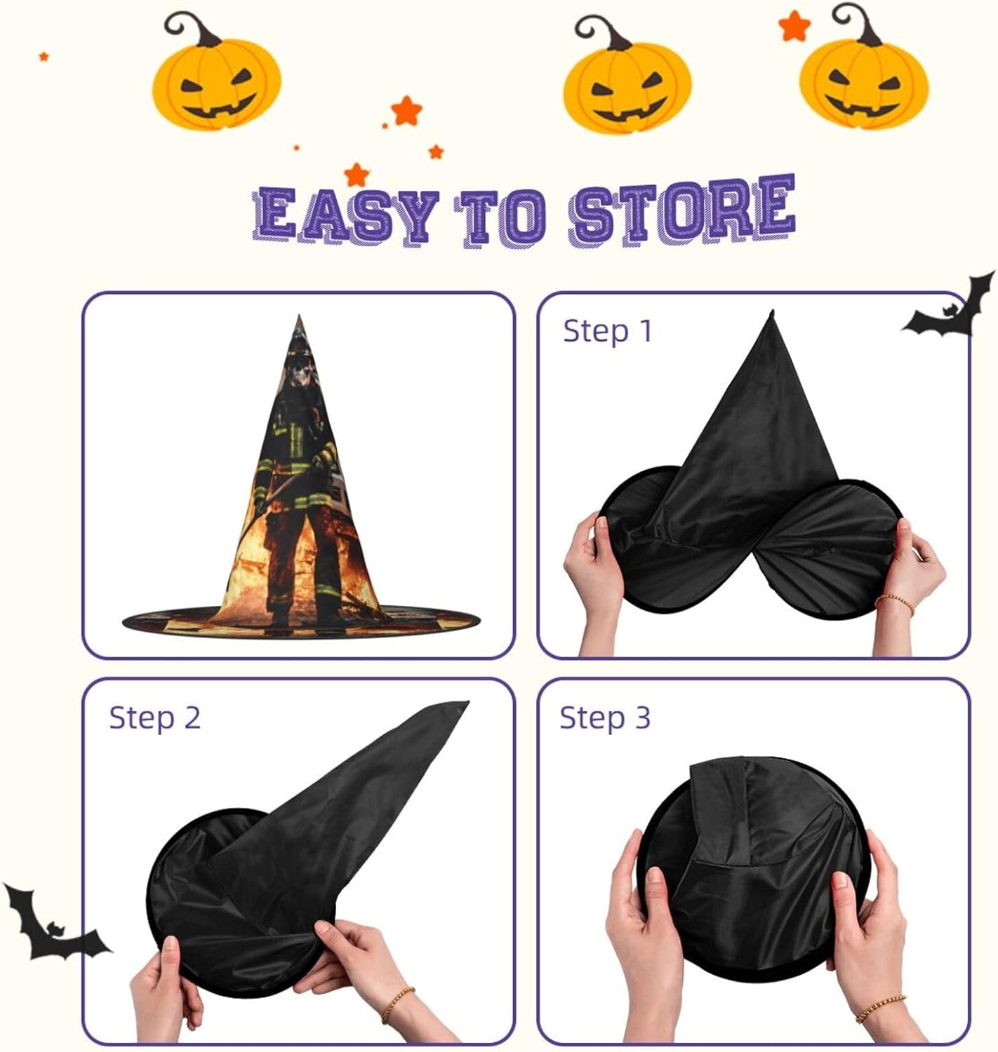 Cappello da mago con stampa fiamme di pompiere per adulti, carnevale, Halloween, feste, feste a tema, cosplay