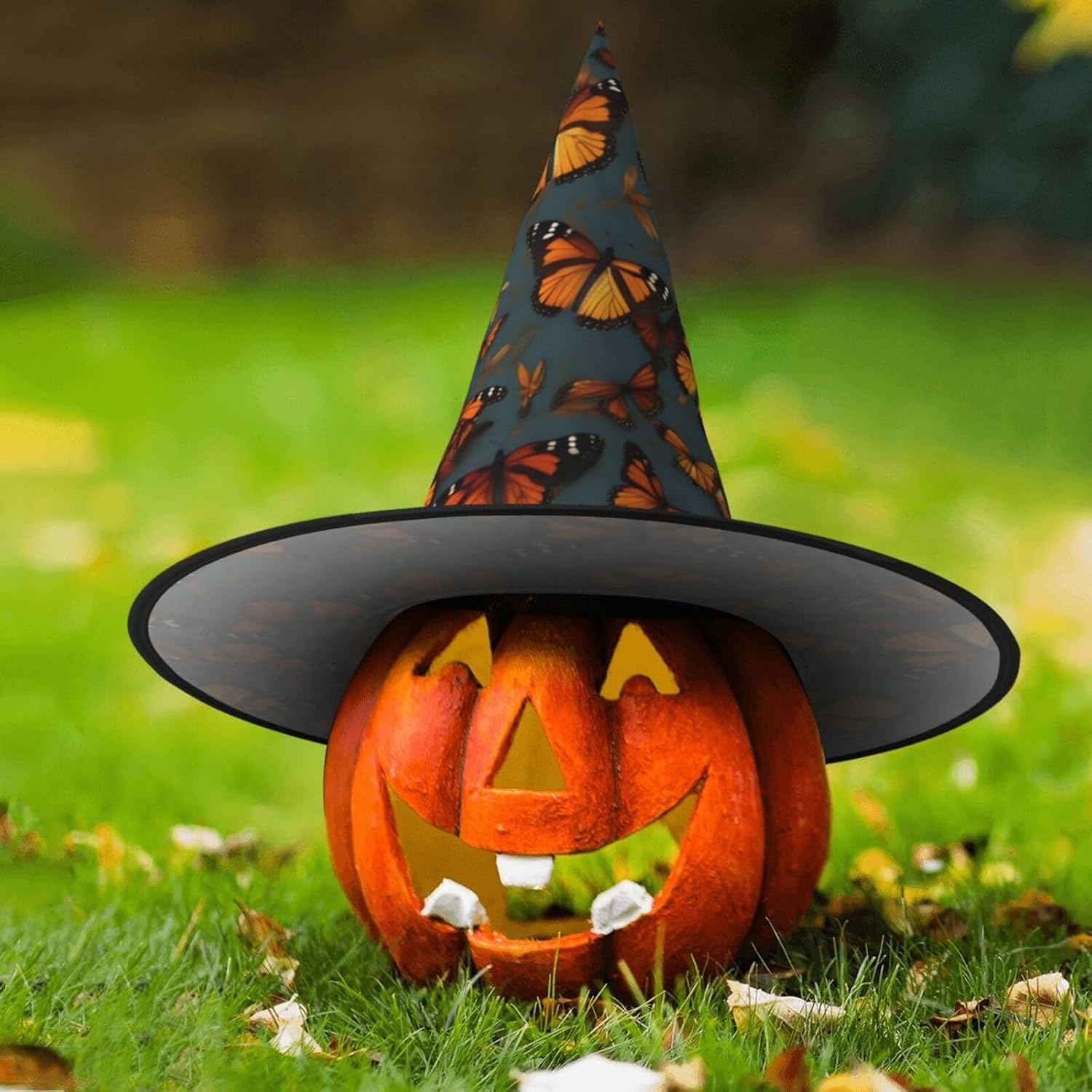 Cappello da mago con stampa monarca arancione e farfalle per adulti, carnevale, Halloween, feste, feste a tema