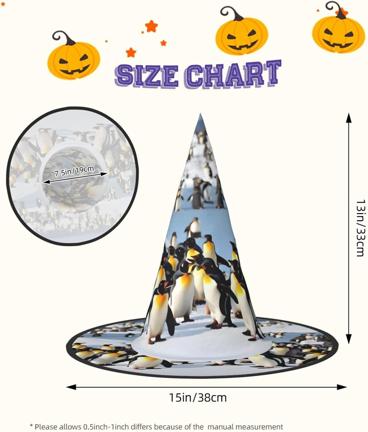Trasforma la tua festa di Halloween o Carnevale con il nostro cappello da strega di Halloween, progettato per aggiungere stile e divertimento a qualsiasi evento a tema. Alto 33 cm con un diametro esterno impressionante di 38 cm, questo cappello non è solo accattivante ma anche incredibilmente versatile. Realizzato in tessuto Oxford, il cappello offre una vestibilità comoda e una qualità di lunga durata. Il design completamente stampato garantisce che si distingua da qualsiasi folla, mentre la struttura pieghevole consente un facile stoccaggio e trasporto. Che tu stia partecipando a un ballo in maschera, a un evento cosplay o decorando la tua casa per le vacanze, questo cappello da strega sarà l'accessorio. Le dimensioni generose e le funzionalità regolabili lo rendono adatto a un'ampia gamma di utenti, garantendo che tutti possano godere del suo fascino. Aggiungi un tocco di fantasia al tuo outfit o usalo come pezzo decorativo per l'arredamento delle tue vacanze. Migliora la tua esperienza di festa e diventa il centro dell'attenzione con questo fantastico cappello da strega del carnevale di Halloween