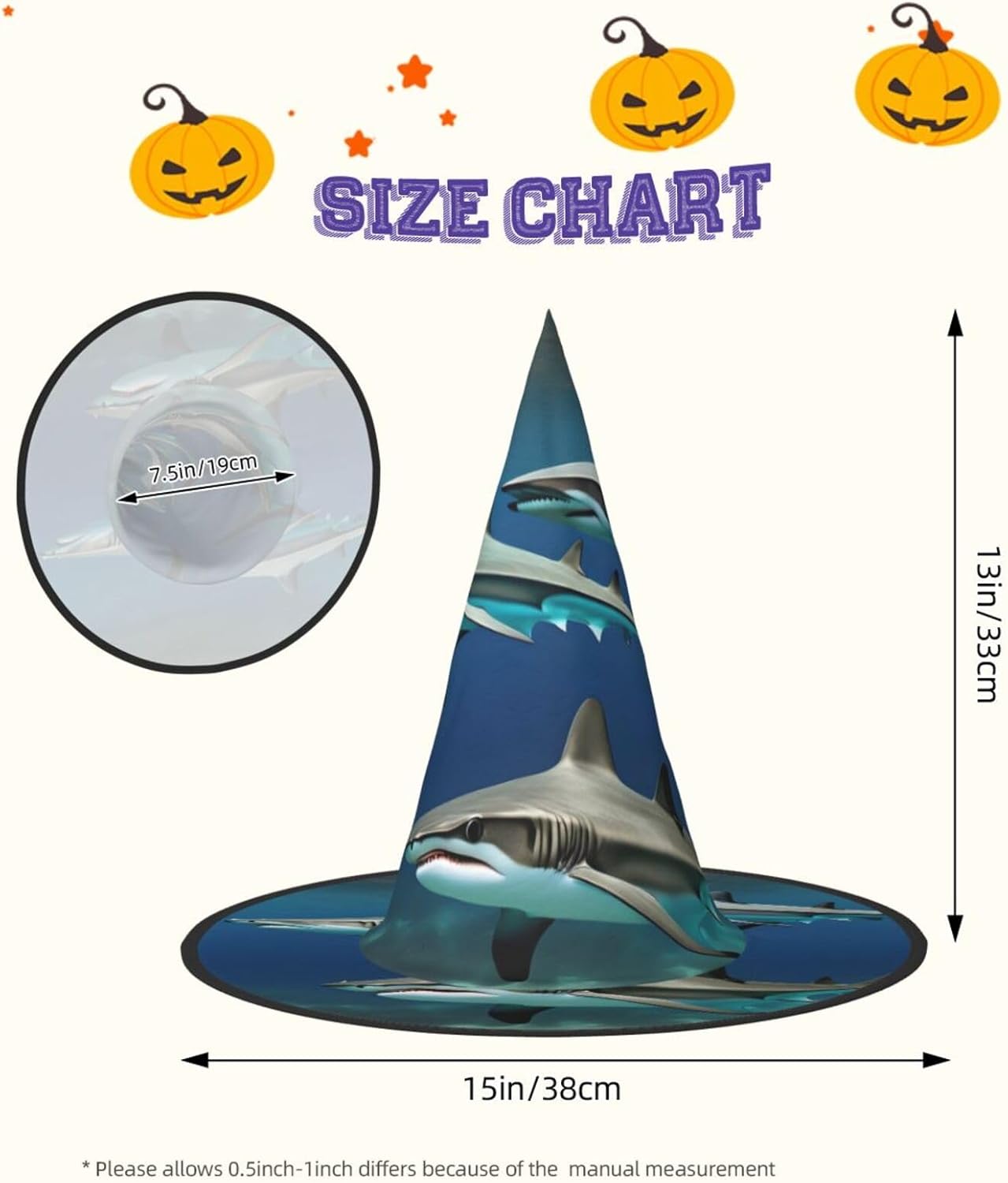 Cappello da mago con stampa squali martello per adulti, carnevale, Halloween, feste, feste a tema, cosplay