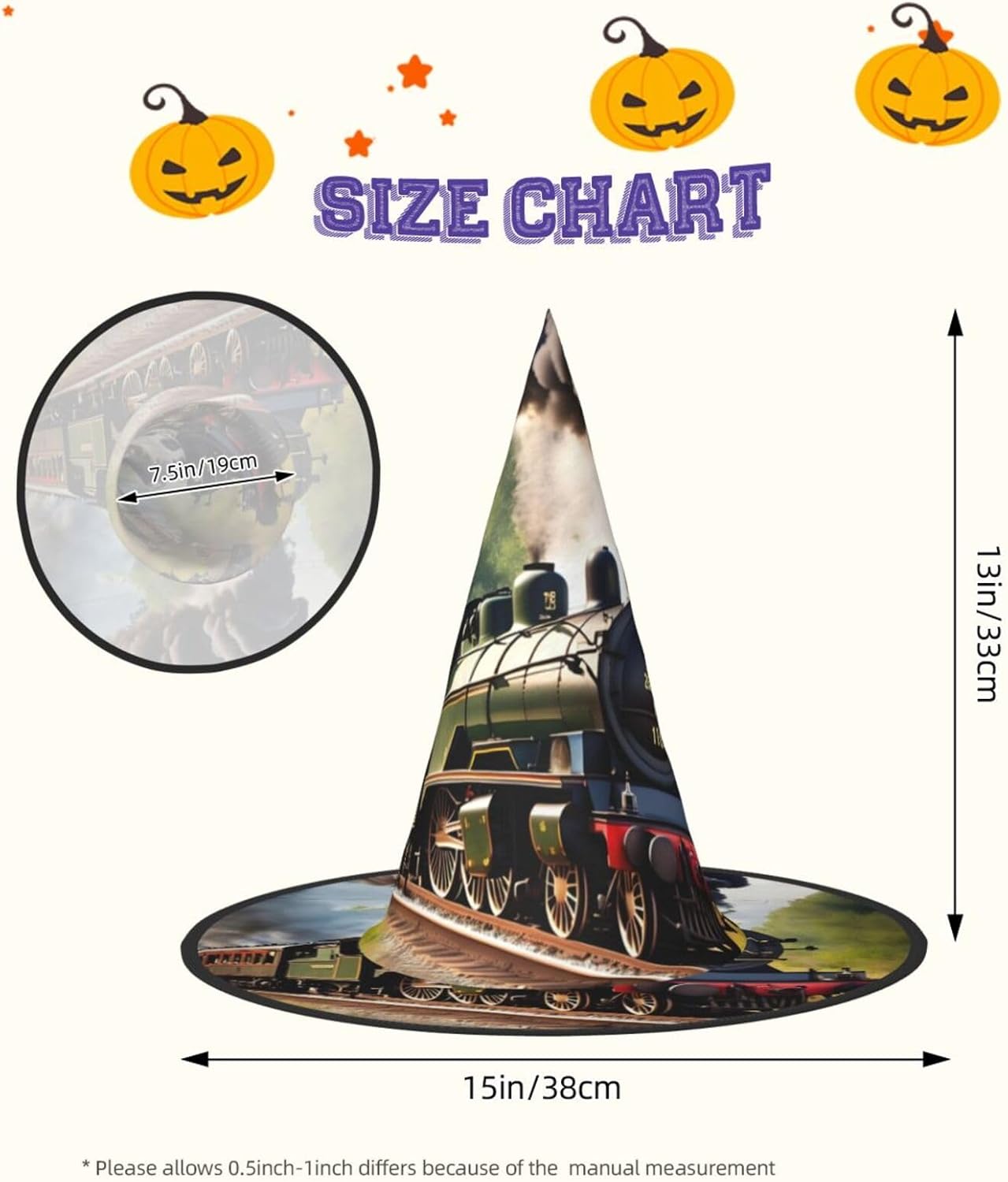 Cappello da mago stampato del piccolo treno a vapore per adulti, carnevale, Halloween, feste, feste a tema, cosplay