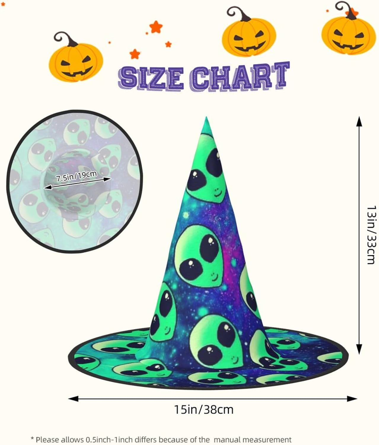 Trasforma la tua festa di Halloween o Carnevale con il nostro cappello da strega di Halloween, progettato per aggiungere stile e divertimento a qualsiasi evento a tema. Alto 33 cm con un diametro esterno impressionante di 38 cm, questo cappello non è solo accattivante ma anche incredibilmente versatile. Realizzato in tessuto Oxford, il cappello offre una vestibilità comoda e una qualità di lunga durata. Il design completamente stampato garantisce che si distingua da qualsiasi folla, mentre la struttura pieghevole consente un facile stoccaggio e trasporto. Che tu stia partecipando a un ballo in maschera, a un evento cosplay o decorando la tua casa per le vacanze, questo cappello da strega sarà l'accessorio. Le dimensioni generose e le funzionalità regolabili lo rendono adatto a un'ampia gamma di utenti, garantendo che tutti possano godere del suo fascino. Aggiungi un tocco di fantasia al tuo outfit o usalo come pezzo decorativo per l'arredamento delle tue vacanze. Migliora la tua esperienza di festa e diventa il centro dell'attenzione con questo fantastico cappello da strega del carnevale di Halloween