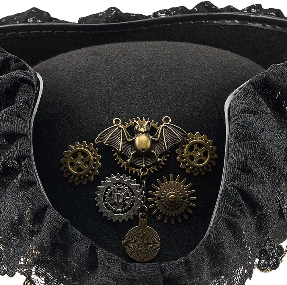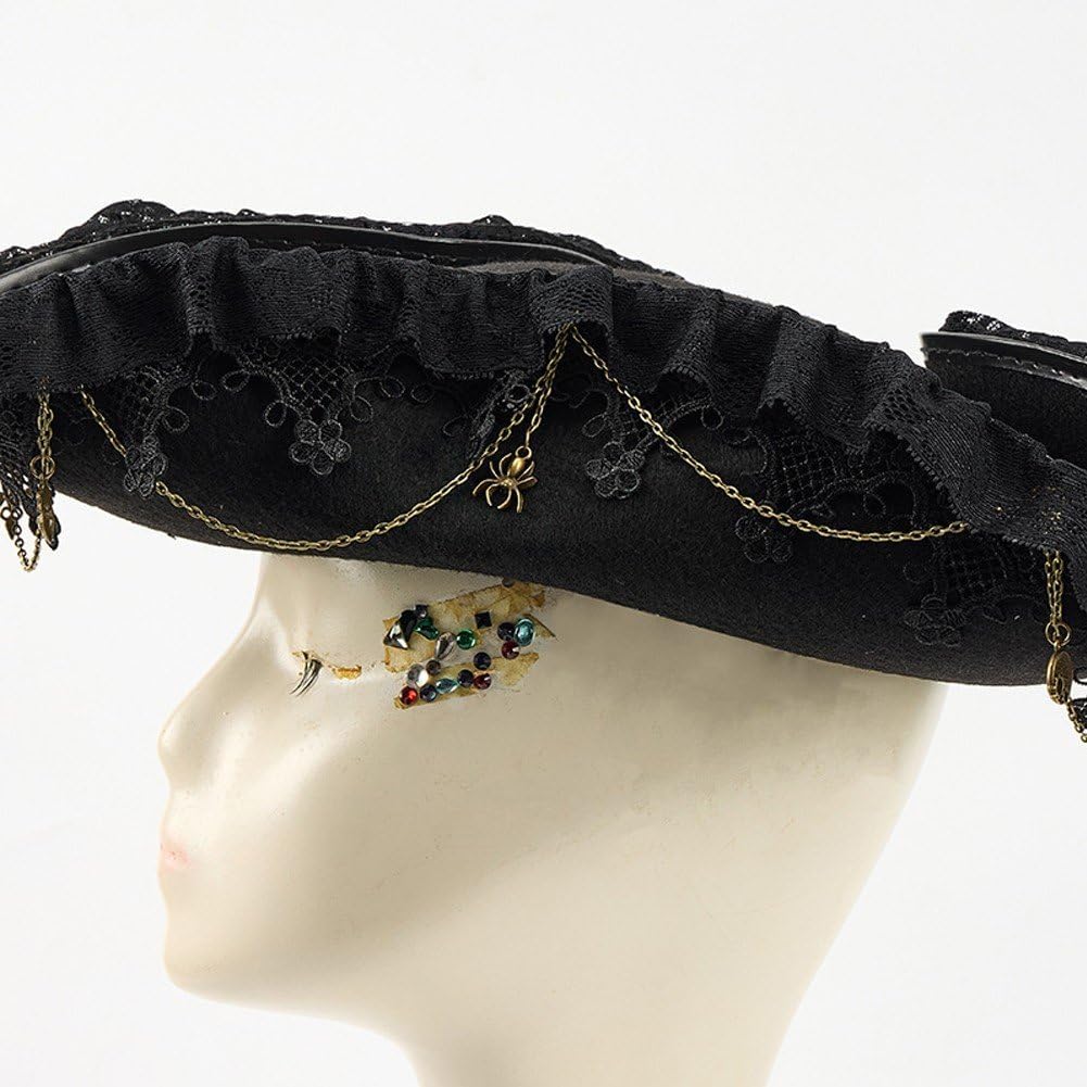 Materiale: con lana e un intricato design in pizzo, questo cappello da pirata steampunk combina l'autenticità storica con una costruzione stabile per ambientazioni in costume di lunga durata. Accessorio: ideale per cosplayer, rievocatori storici o artisti teatrali alla ricerca di accessori coloniali dal look steampunk. : Perfetto per feste a tema vittoriano, fiere rinascimentali, produzioni teatrali o costumi di Halloween che richiedono copricapi a tema vittoriano. Stile medievale: il cappello a tricorno con finitura invecchiata ispira l'avventura, rendendo questo cappello da pirata bordato in pizzo un copricapo straordinario per giochi di ruolo coinvolgenti o esposizioni da collezione. Unico: design con tesa larga, cuciture rinforzate e design con ingranaggi in metallo, il cappello triangolare regge adattandosi a acconciature di diverse dimensioni della testa.