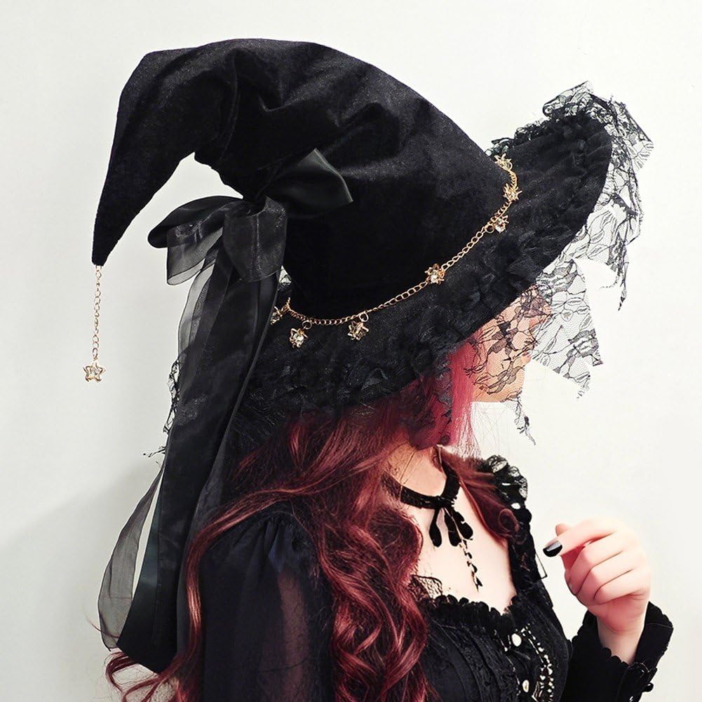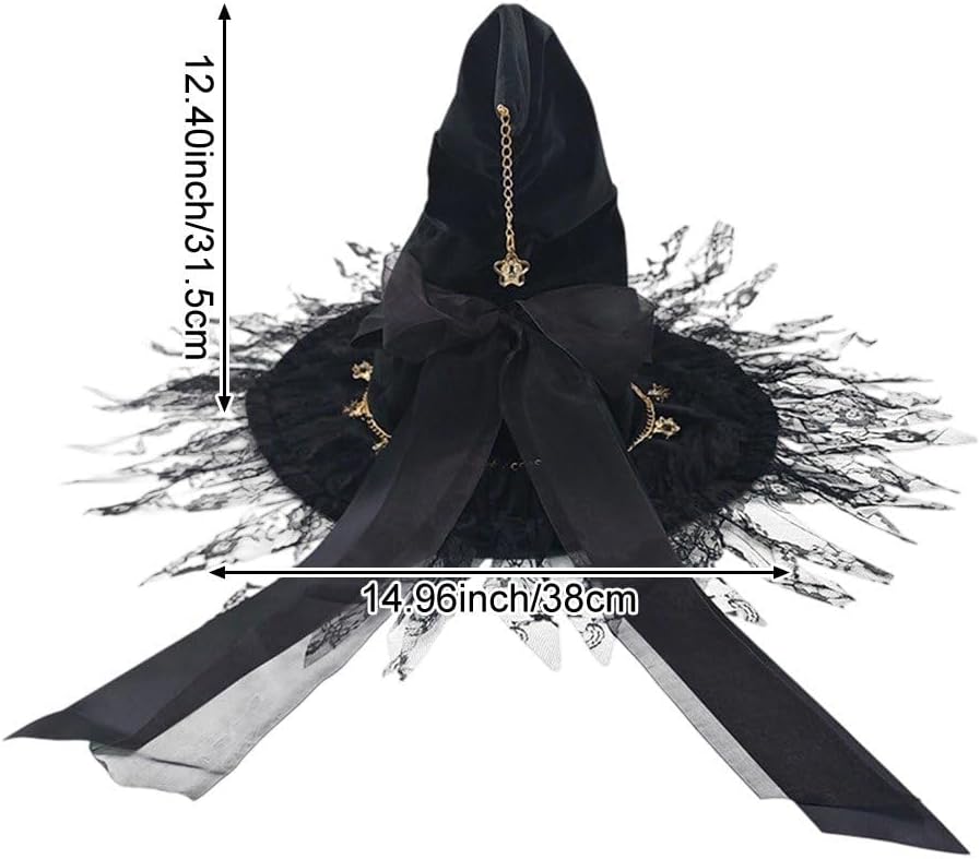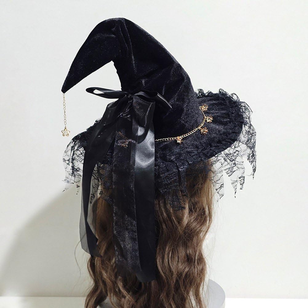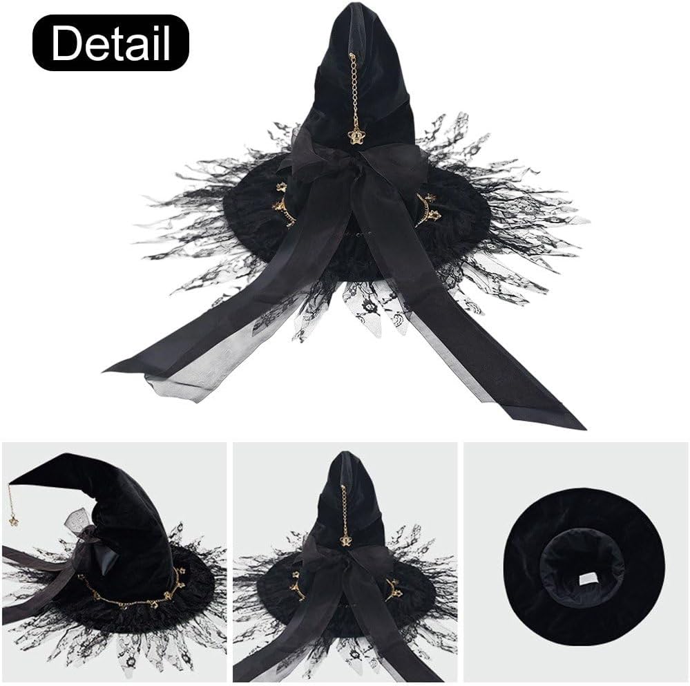 VESTIBILITÀ CONFORTEVOLE PER GLI ADULTI: Realizzato con materiali morbidi, questo cappello da mago garantisce una vestibilità comoda e sicura per donne e adulti di diverse dimensioni della testa, permettendoti di indossarlo tutto il giorno o la notte senza disagio. Perfetto per gli eventi di Halloween: questo cappello da strega aggiunge fascino autentico alle feste di Halloween, alle convention di cosplay, ai servizi fotografici e agli eventi a tema, aiutandoti a creare un look magico e memorabile che cattura l'essenza della tradizionale stregoneria della moda fantasy. Accessorio cosplay versatile: ideale per streghe, maghi e costumi a tema fantasy, questo cappello da strega nero si abbina perfettamente con abiti da strega neri, abiti Lolita o altri indumenti gotici, rendendolo un'aggiunta indispensabile alla tua collezione di costumi. Artigianato stabile: realizzato in tessuto leggero e stabile con meticolosi dettagli in pizzo, questo cappello mantiene la sua forma e il suo stile, fornendo un accessorio riutilizzabile affidabile per molteplici eventi. Elegante design Lolita: ornato con pizzo squisito e un fiocco affascinante, questo cappello da strega nero combina il classico stile Lolita con un'estetica da mago. Perfetto per cosplay, Halloween o feste in costume eleganti, aggiungerà un tocco di raffinatezza a tutti i tuoi outfit.