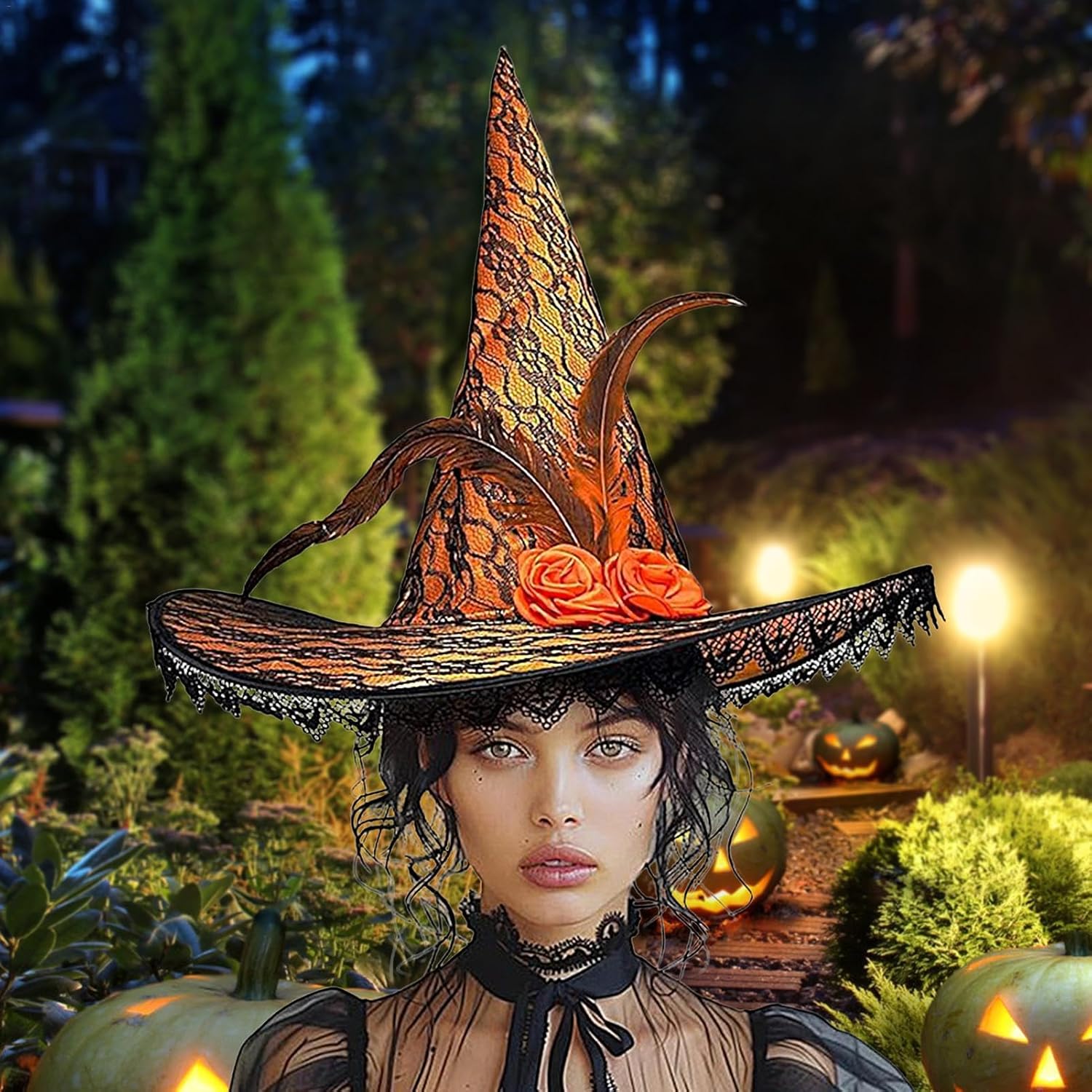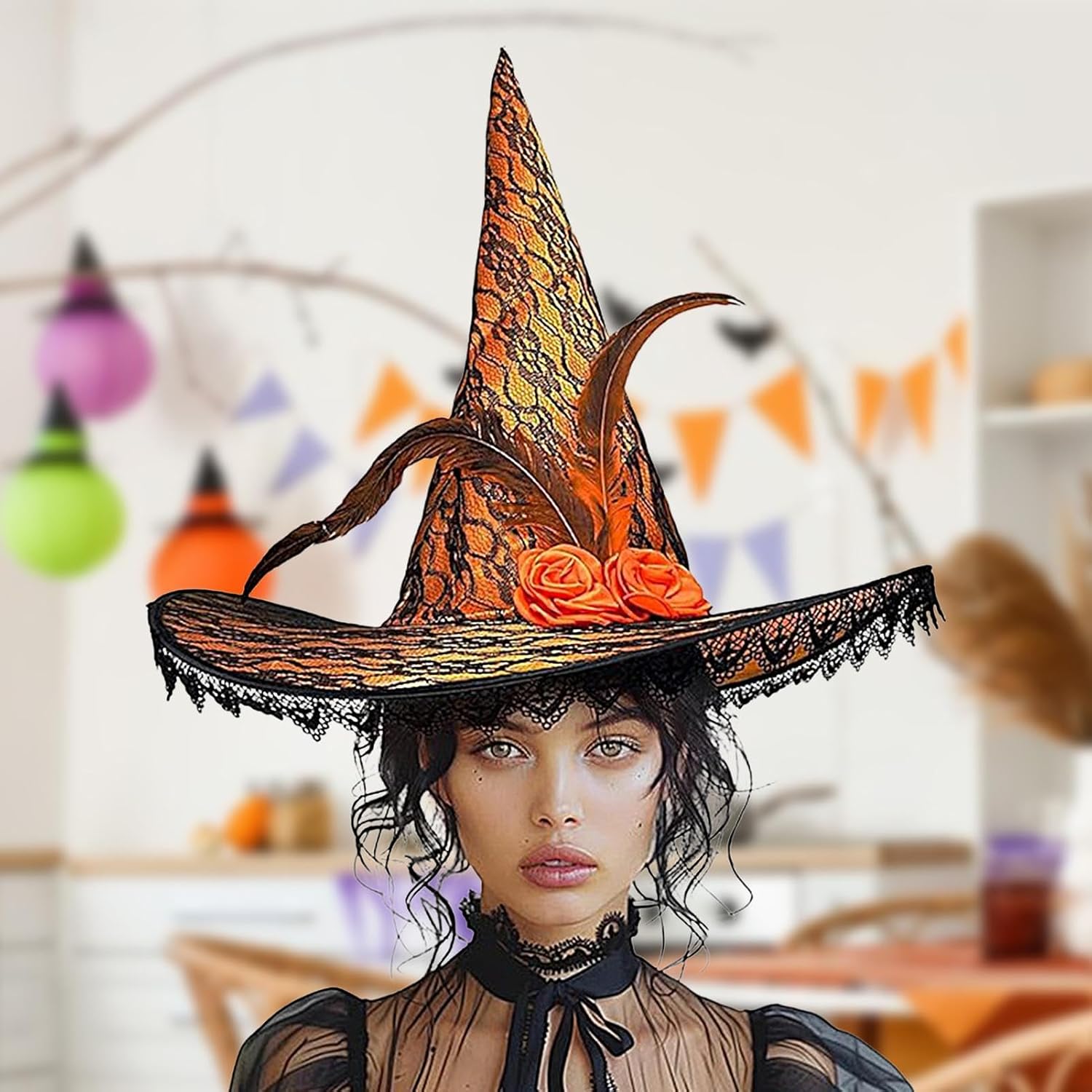 Il nostro cappello da strega di Halloween è splendidamente decorato con rose e piume, perfetto per qualsiasi mascherata! Facile da mantenere, questo cappello completerà qualsiasi costume da strega senza rompere la banca. : Raso + pizzo Dimensioni del prodotto: circa 44 x 39 cm. Peso: circa 120 g. Contenuto della confezione: 1 cappello per Halloween