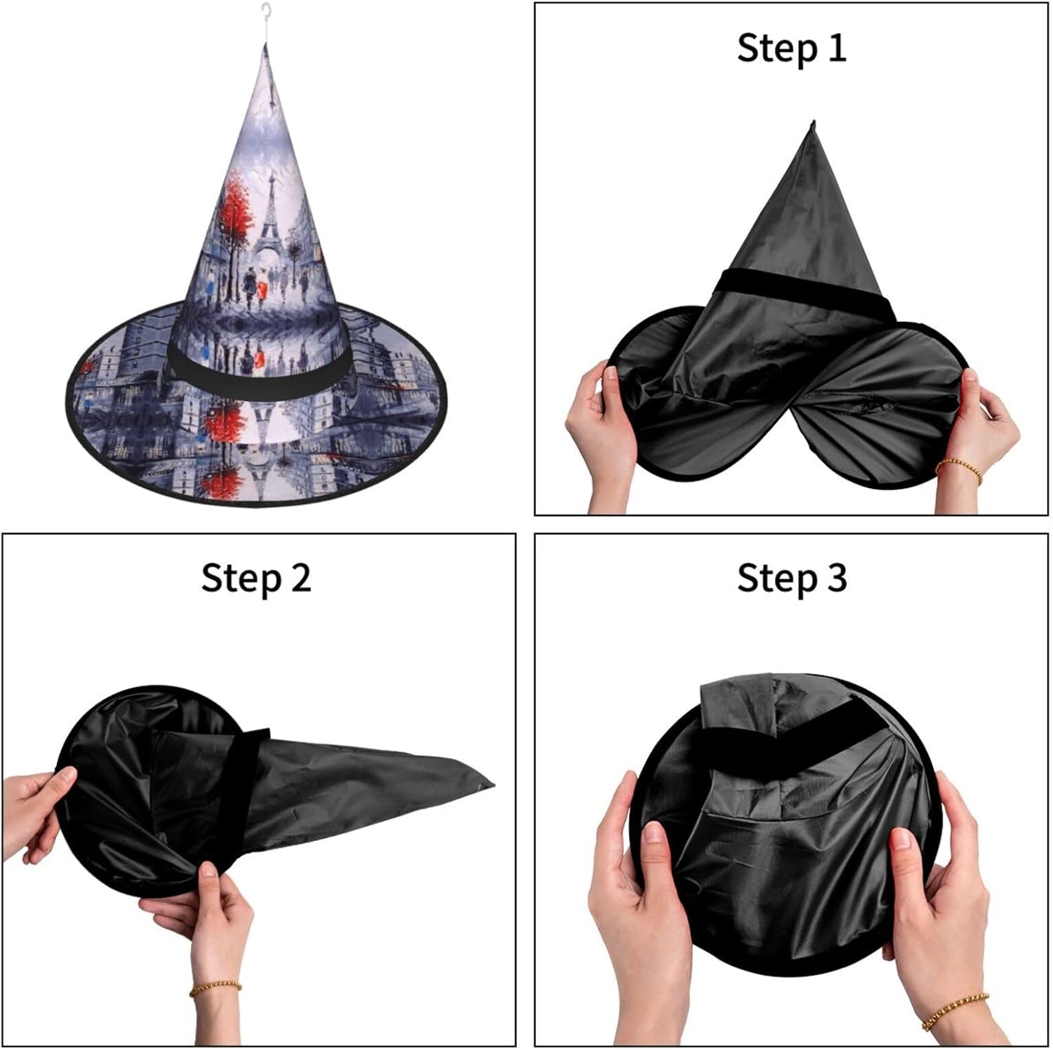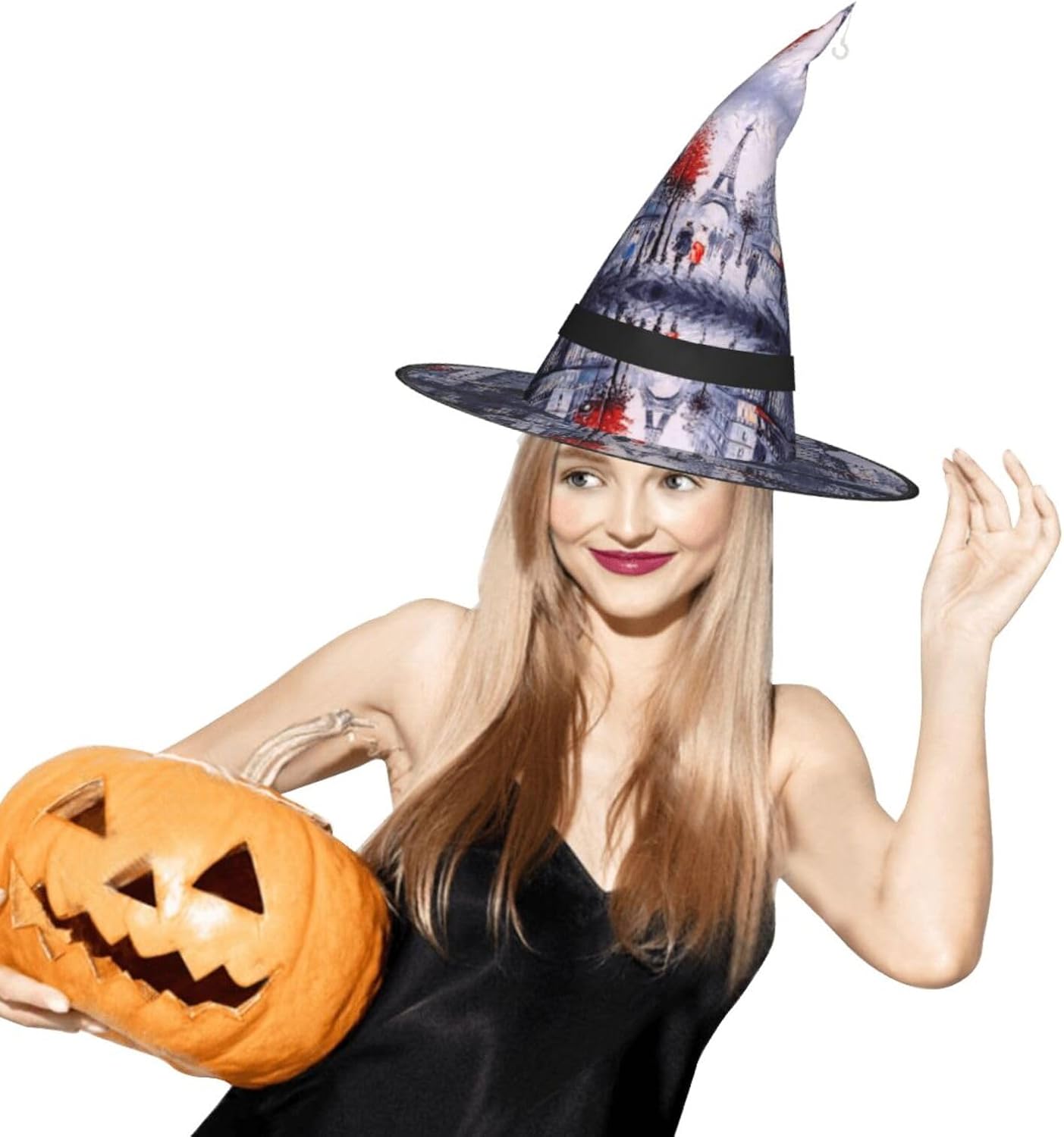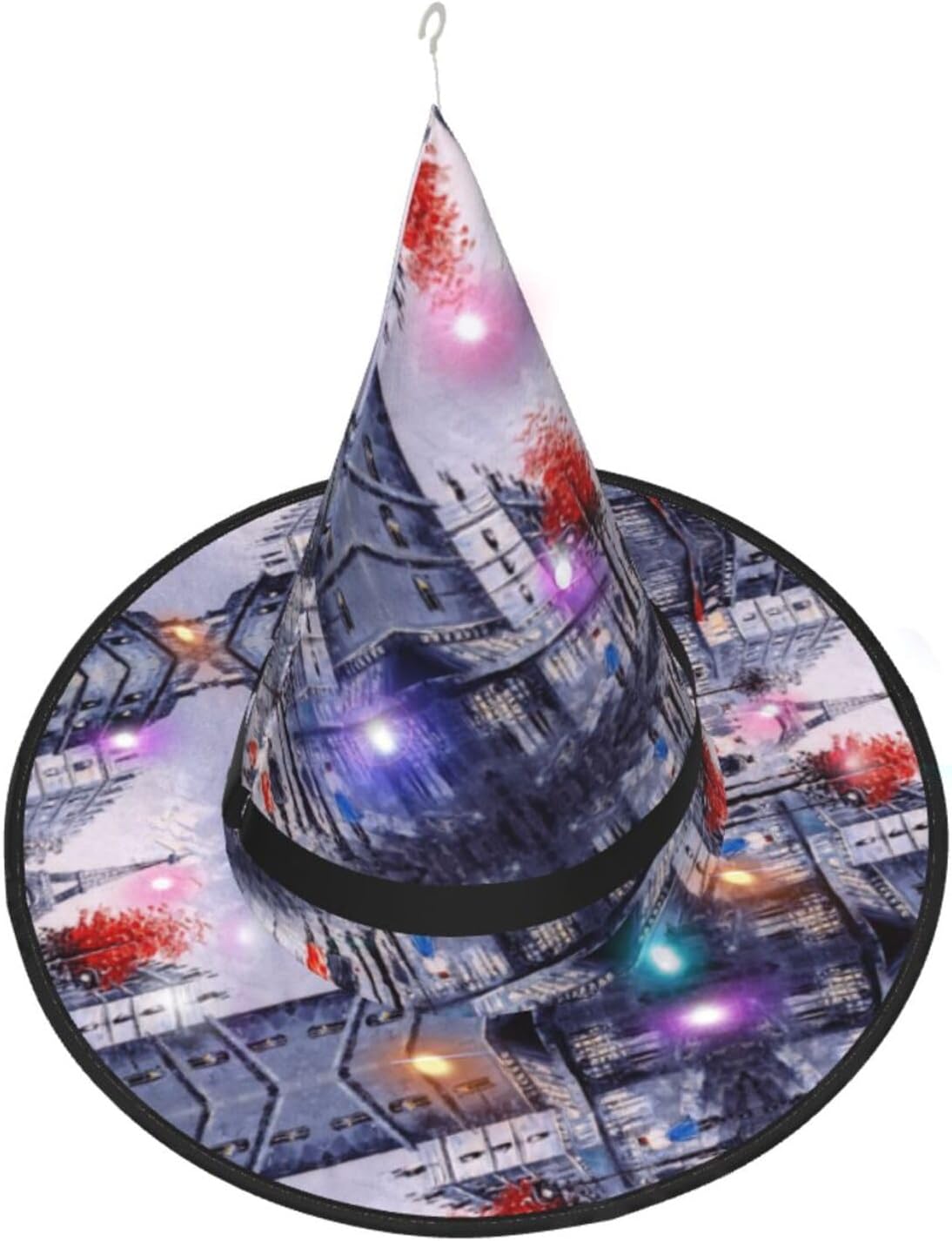 Parigi City Tree Eiffel Tower Art Aggiungi un tocco stravagante al tuo costume con il nostro incantevole cappello da strega, l'accessorio perfetto per una varietà di eventi festivi e divertenti. Presenta un accattivante design a stampa completa ed è realizzata in morbido tessuto Oxford resistente. Design intelligente, la parte superiore del cappello può essere ridotta e la tesa attorcigliata e piegata per risparmiare spazio, rendendolo portatile e facile da trasportare. Una delle sue caratteristiche distintive è la stringa luminosa interna a LED che si illumina per creare un'atmosfera magica. Comodamente, il cappello può anche essere appeso come decorazione utilizzando il gancio sulla parte superiore. Indossa questo affascinante cappello da strega alla tua prossima festa, carnevale o evento di Halloween e diventa il centro di attrazione. Nonostante le sue grandi dimensioni, è leggero, il che lo rende comodo da indossare o trasportare senza sentirsi appesantito. Rendi le tue occasioni speciali con il nostro incantevole cappello da strega!