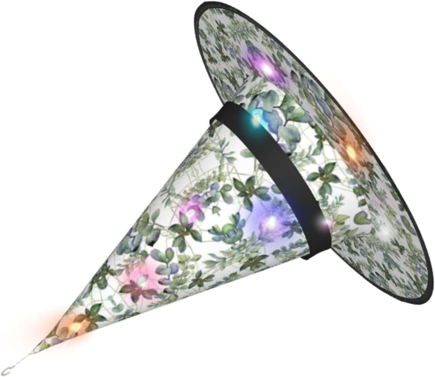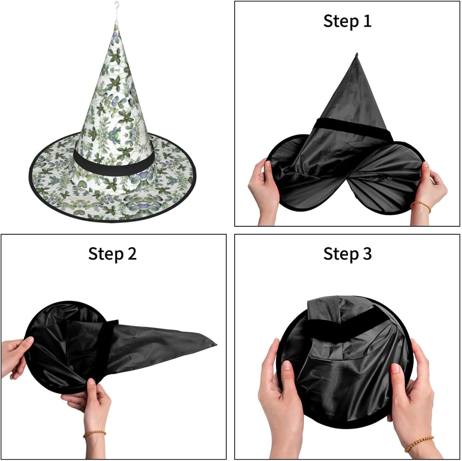 Foglie di eucalipto verde Aggiungi un tocco stravagante al tuo costume con il nostro incantevole cappello da strega, l'accessorio perfetto per una varietà di eventi festivi e divertenti. Presenta un accattivante design a stampa completa ed è realizzata in morbido tessuto Oxford resistente. Design intelligente, la parte superiore del cappello può essere ridotta e la tesa attorcigliata e piegata per risparmiare spazio, rendendolo portatile e facile da trasportare. Una delle sue caratteristiche distintive è la stringa luminosa interna a LED che si illumina per creare un'atmosfera magica. Comodamente, il cappello può anche essere appeso come decorazione utilizzando il gancio sulla parte superiore. Indossa questo affascinante cappello da strega alla tua prossima festa, carnevale o evento di Halloween e diventa il centro di attrazione. Nonostante le sue grandi dimensioni, è leggero, il che lo rende comodo da indossare o trasportare senza sentirsi appesantito. Rendi le tue occasioni speciali con il nostro incantevole cappello da strega!