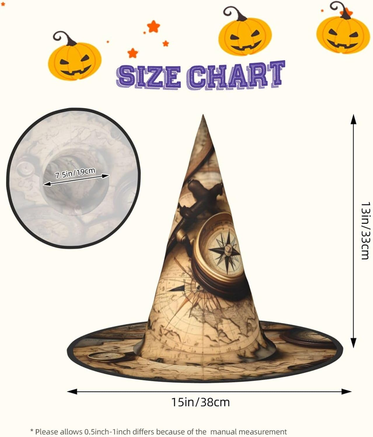 Questo cappello di Halloween con stampa di bussola e vecchia mappa del mondo è una miscela unica di comfort e stile, realizzato in tessuto Oxford. Il suo design compatto e leggero lo rende per portarlo in giro senza il peso. Ha una struttura unica; la parte superiore può essere ridotta e i bordi possono essere attorcigliati e piegati, consentendo una facile conservazione. La bussola e il vecchio cappello da strega con stampa di mappa del mondo, che si tratti di una festa di Halloween, una festa in maschera o un gioco di ruolo, il nostro cappello è il tuo accessorio perfetto. Al centro dell'attenzione in qualsiasi evento di Halloween. È anche facile da pulire: lavabile in lavatrice o a mano, si asciuga rapidamente e facile da pulire. Scatena la tua strega interiore questo Halloween con i nostri cappelli da strega alla moda e divertenti! Nota: per una migliore cura, evitare la candeggina. Rendi indimenticabile questo Halloween con i nostri cappelli da mago per Halloween!