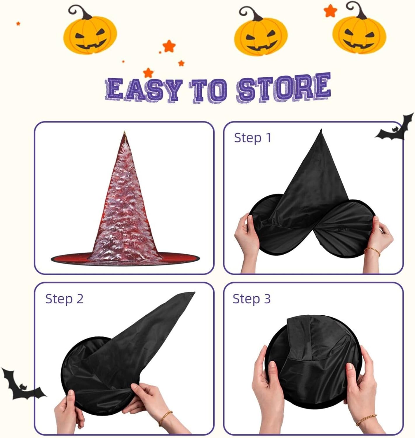 Cappello da strega da donna, cappello pieghevole a punta per Halloween, decorazione per feste, 1 pezzo - albero di Natale rosso
