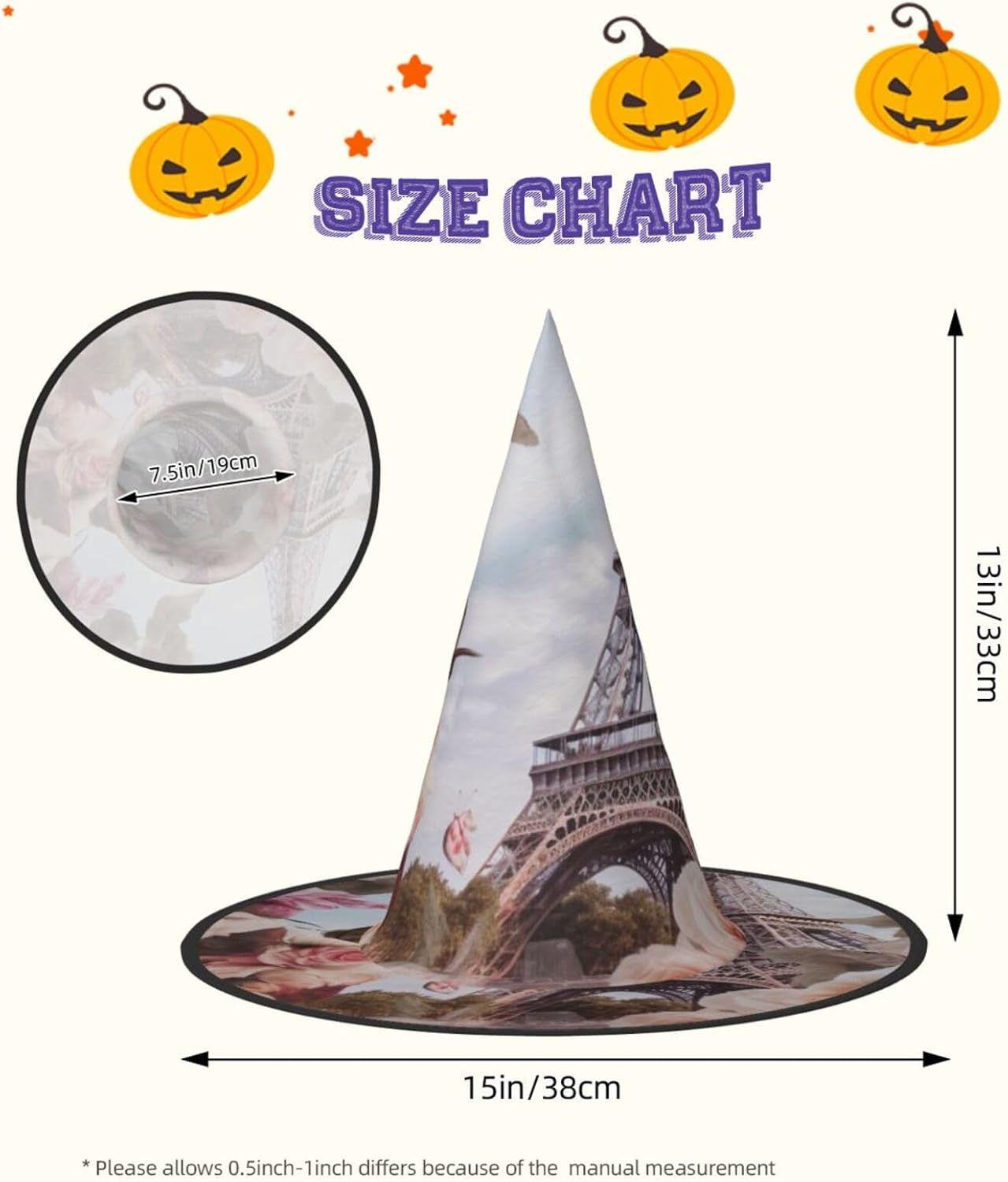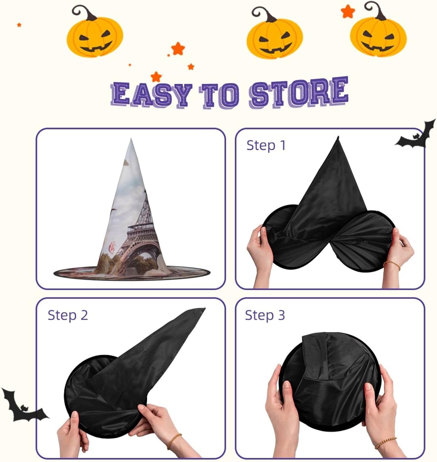 Cappello da strega da donna, cappello pieghevole a punta per Halloween, decorazione per feste, 1 pezzo, fiore Torre Eiffel di Parigi