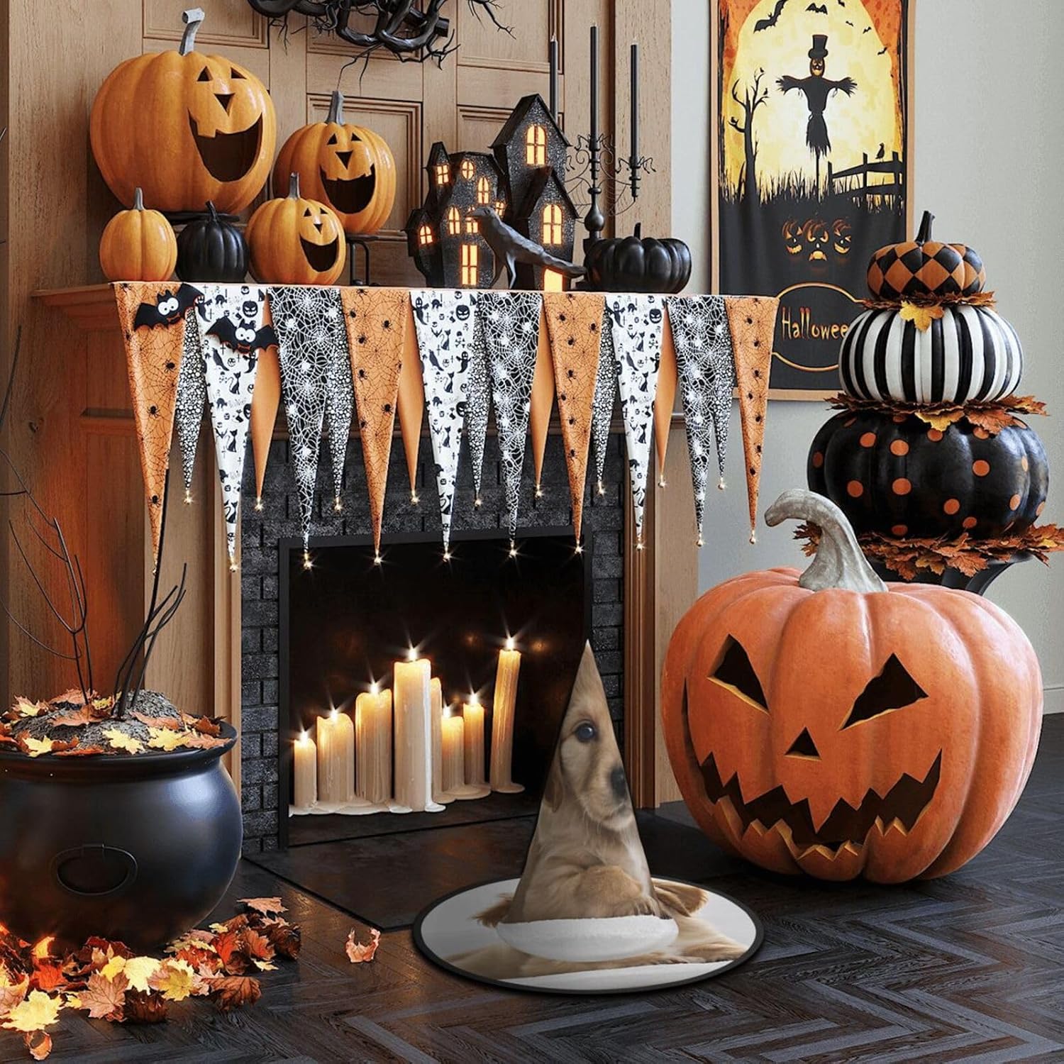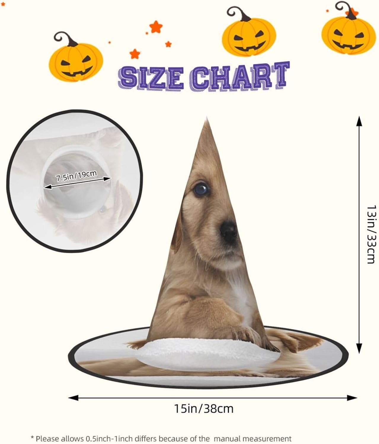 Cappello da strega da donna, cappello pieghevole a punta per Halloween, decorazione per feste, 1 pezzo, Golden Retriever