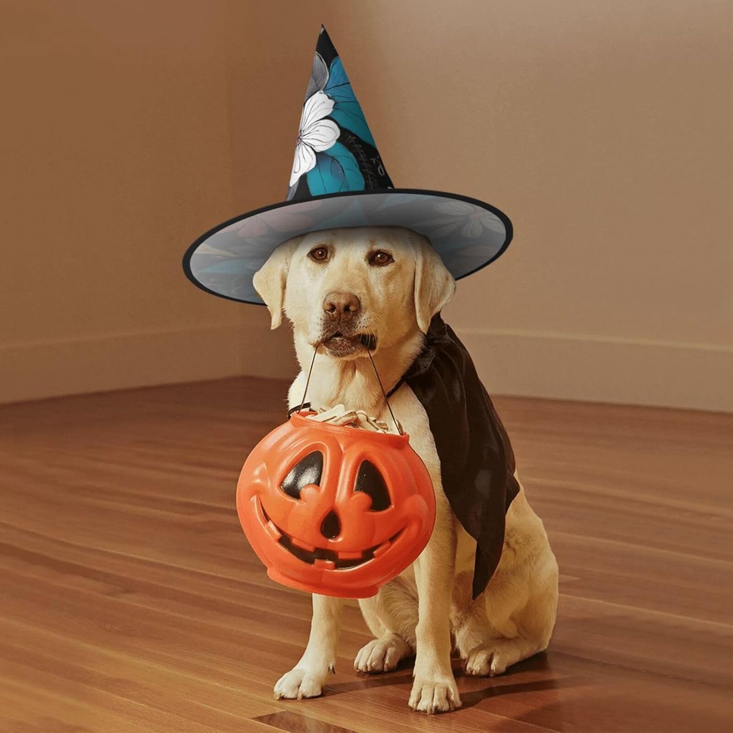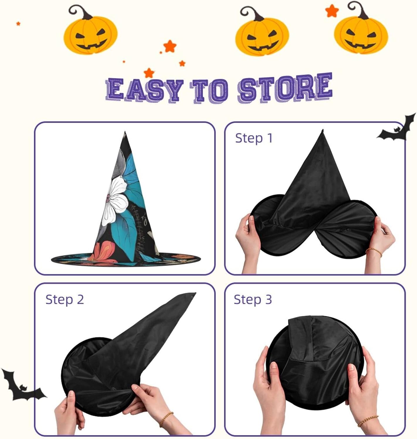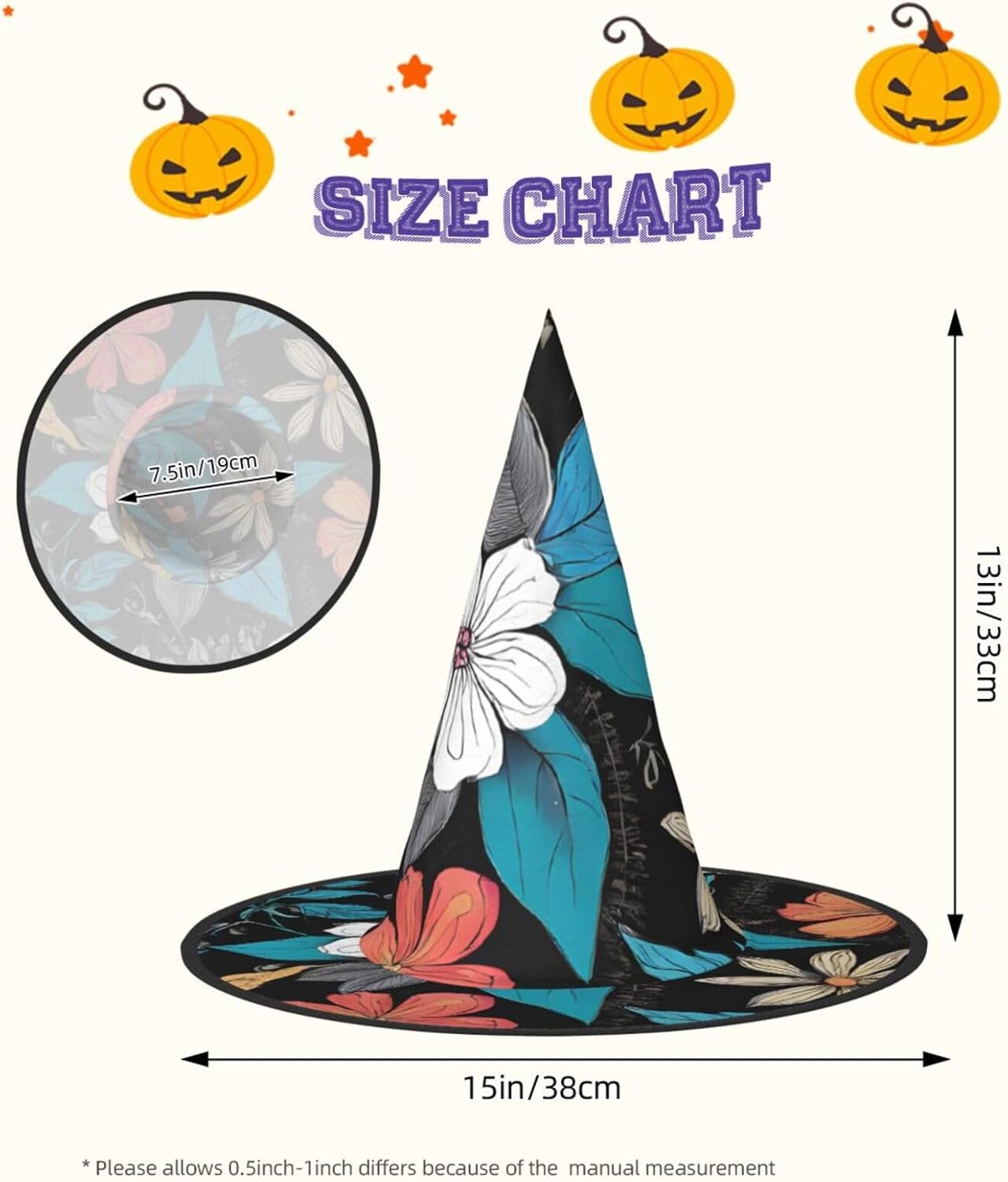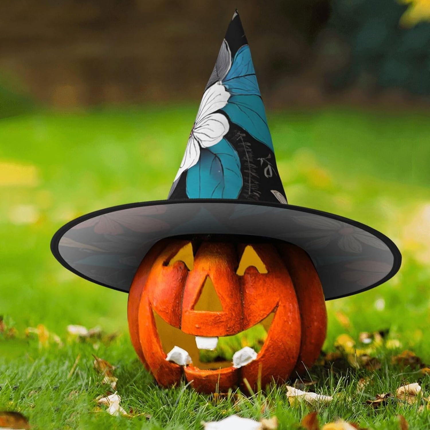 Cappello da strega da donna con cappuccio pieghevole a punta per decorazioni per feste di Halloween 1PCS - blu floreale
