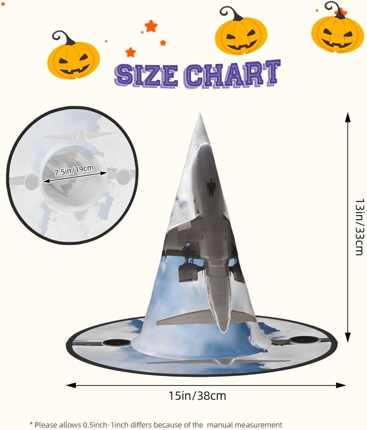 Cappello da strega da donna con guglia a punta, pieghevole, decorazione per feste di Halloween, 1 pezzo, arte aeroplano