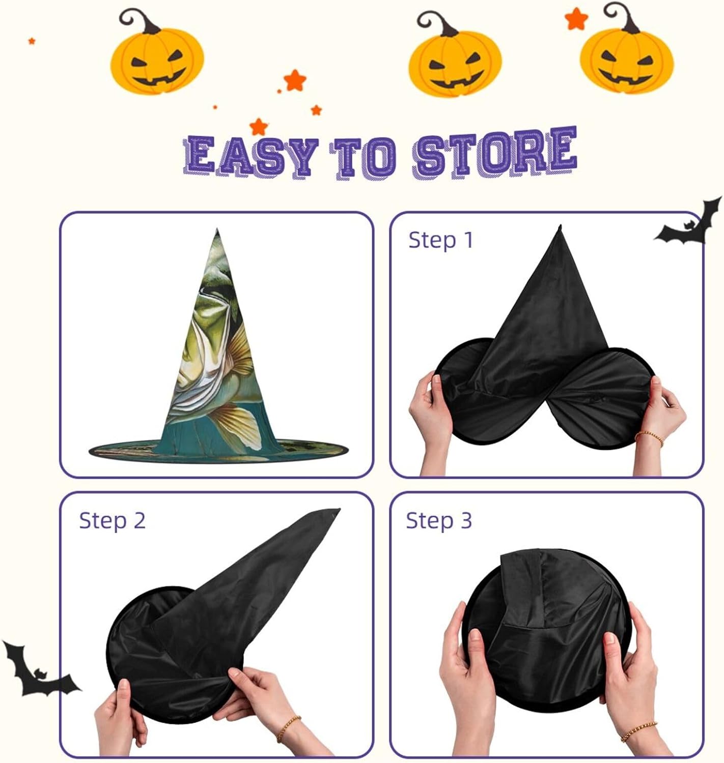 Cappello da strega da donna con guglia a punta, pieghevole, per decorazioni per feste di Halloween, 1 pezzo - Bass Fishing Wave