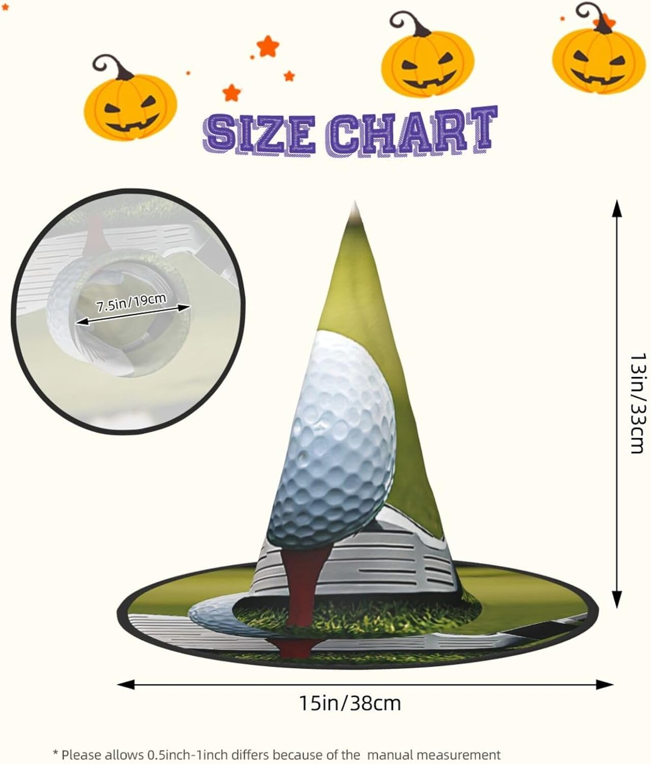 Cappello da strega da donna con guglia a punta, pieghevole, per decorazioni per feste di Halloween, 1 pezzo, mazza da golf