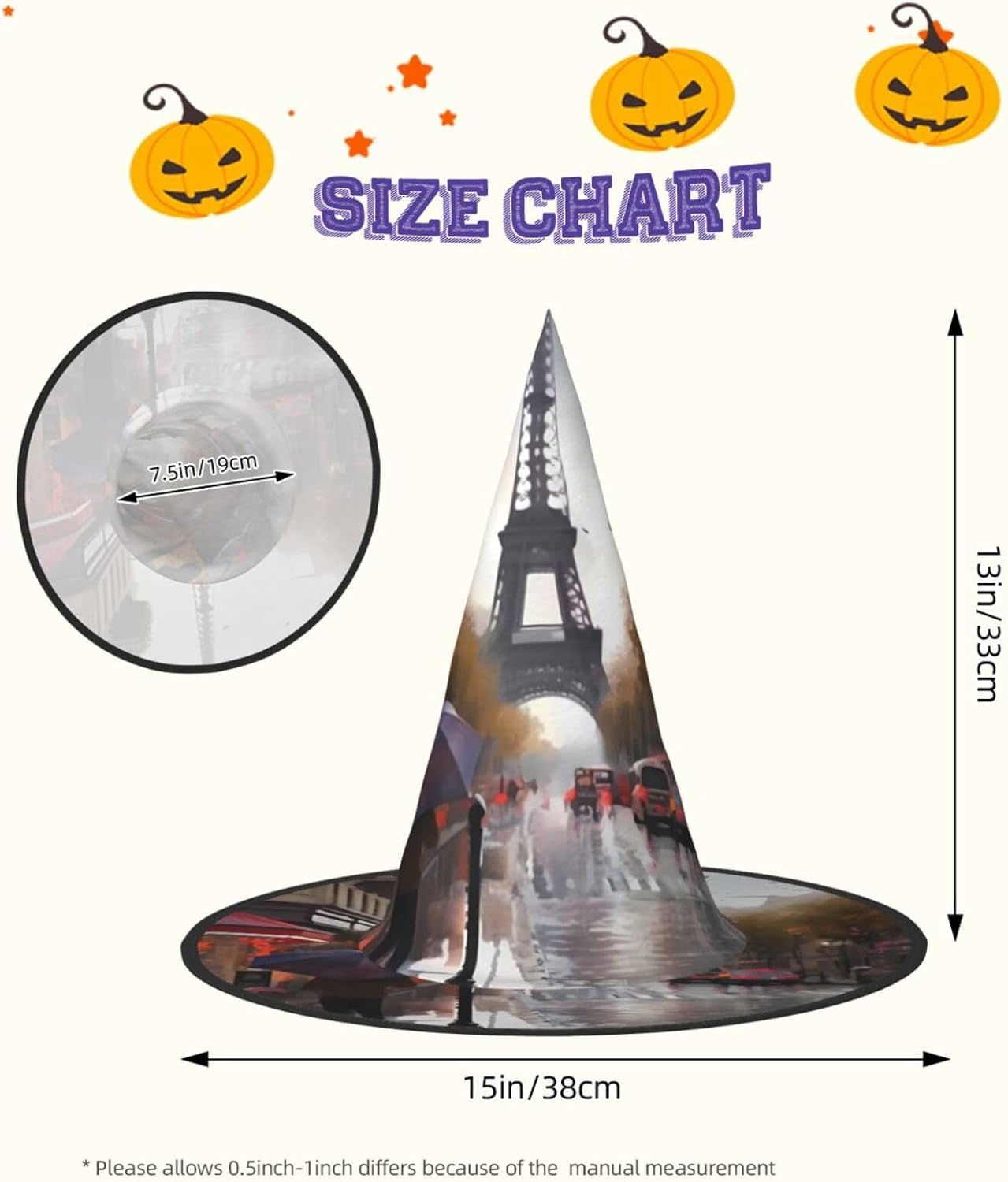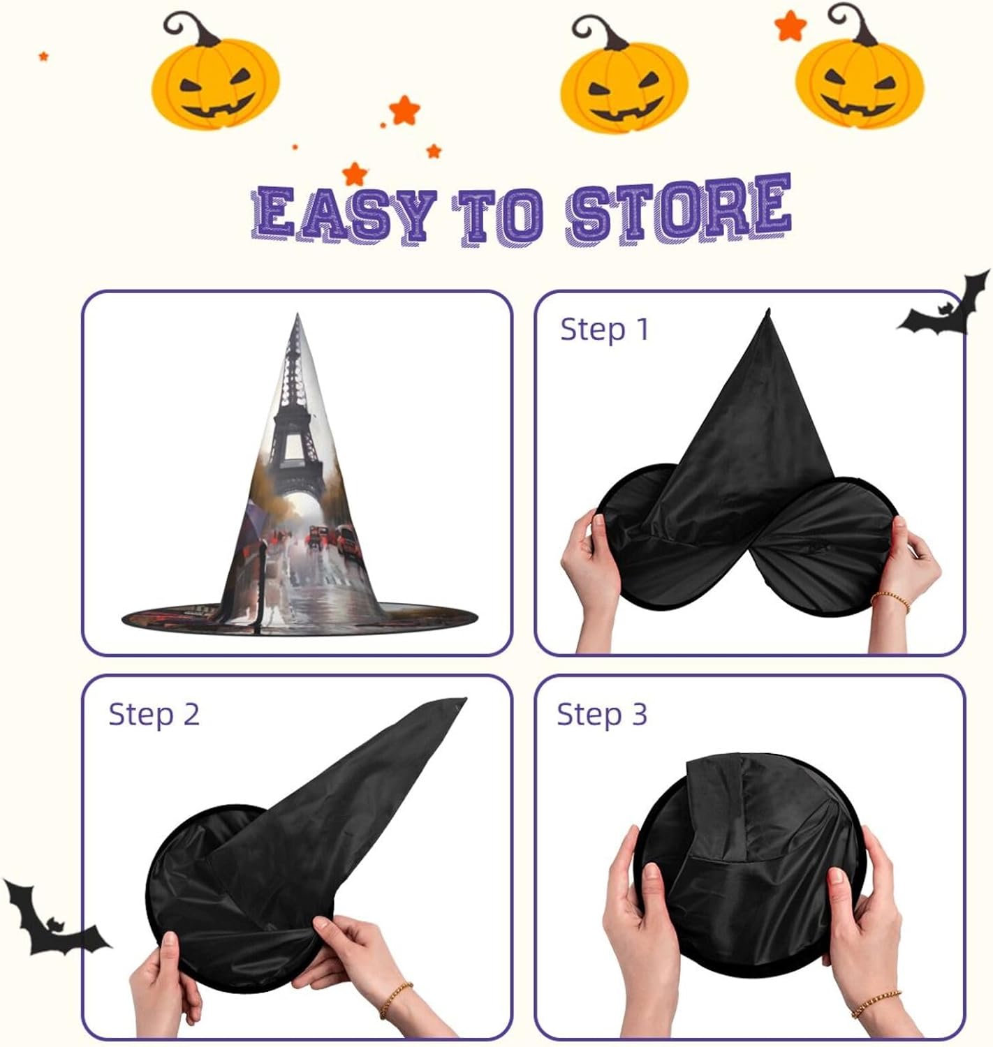 Cappello da strega da donna con guglia a punta, pieghevole, per decorazioni per feste di Halloween, 1 pezzo - Rainy Street a Parigi