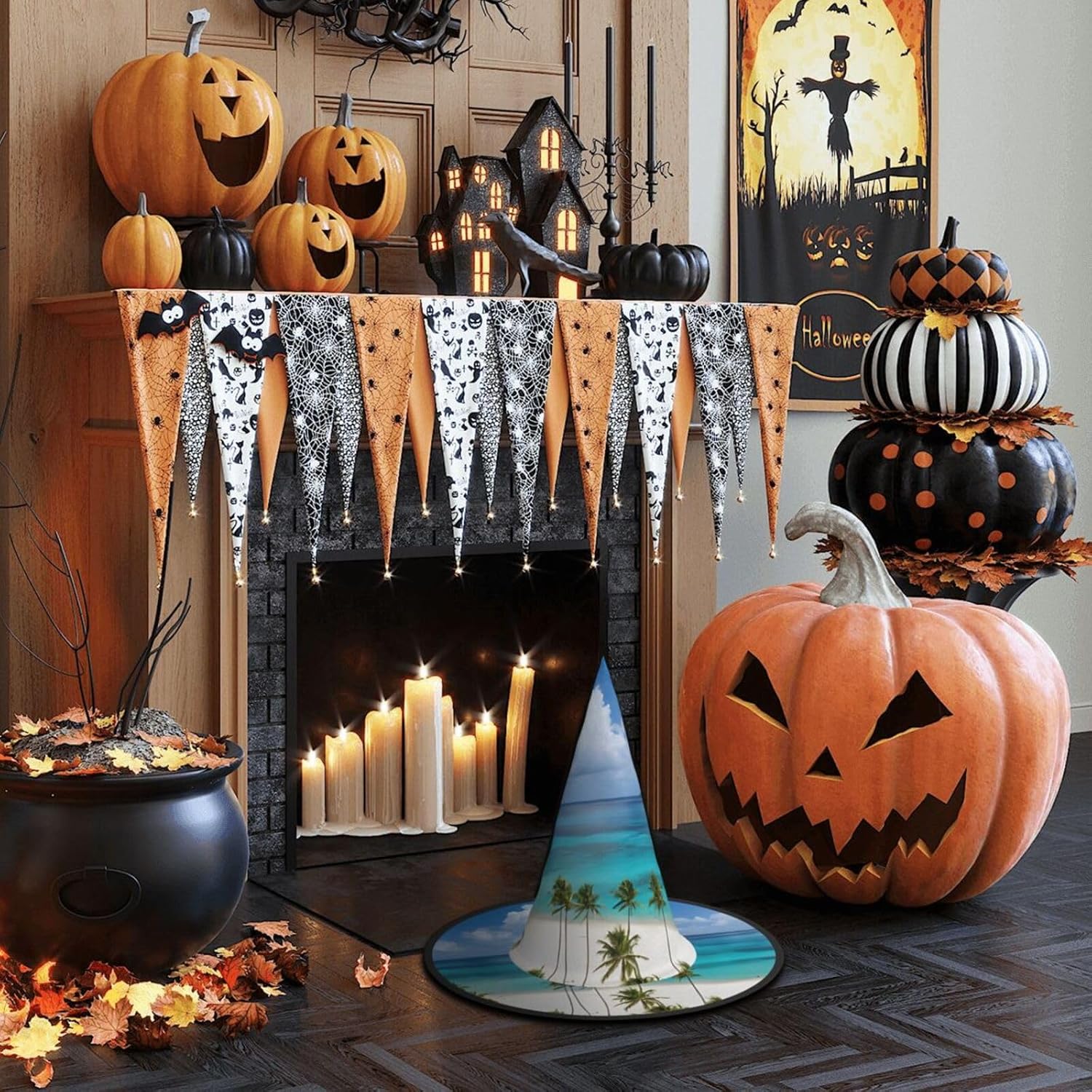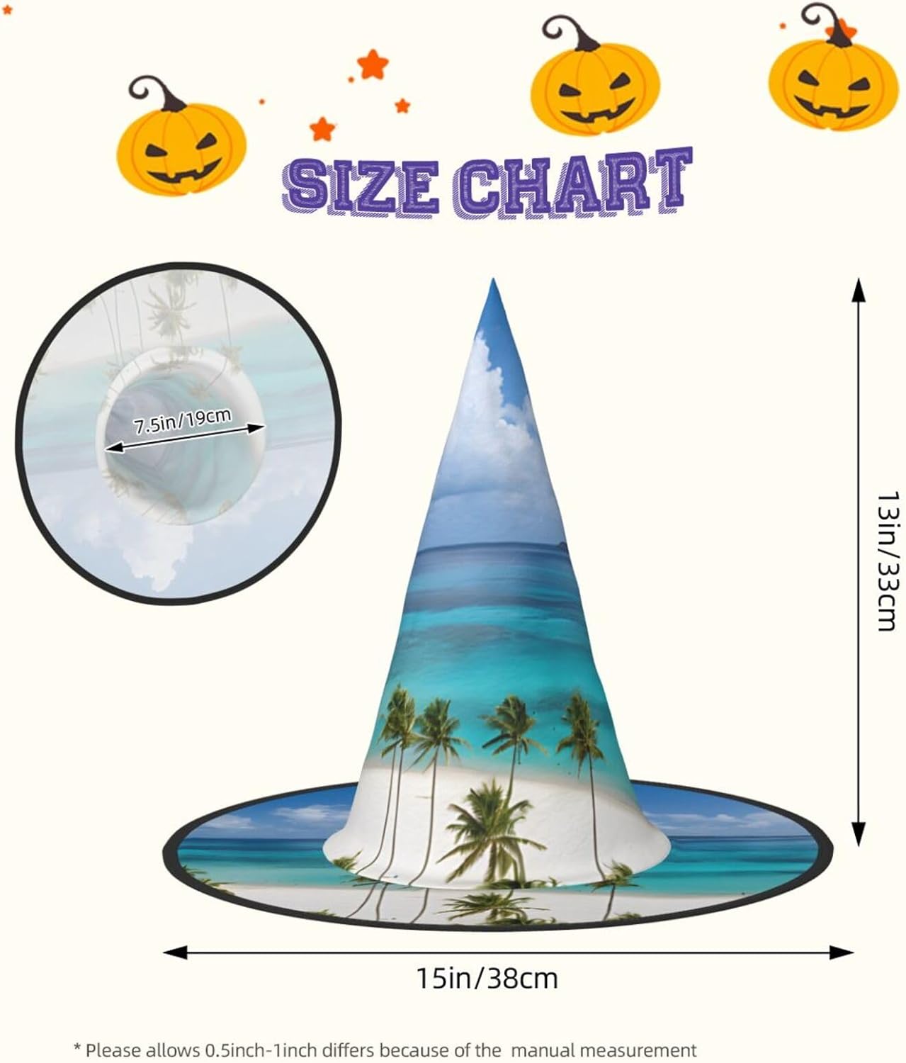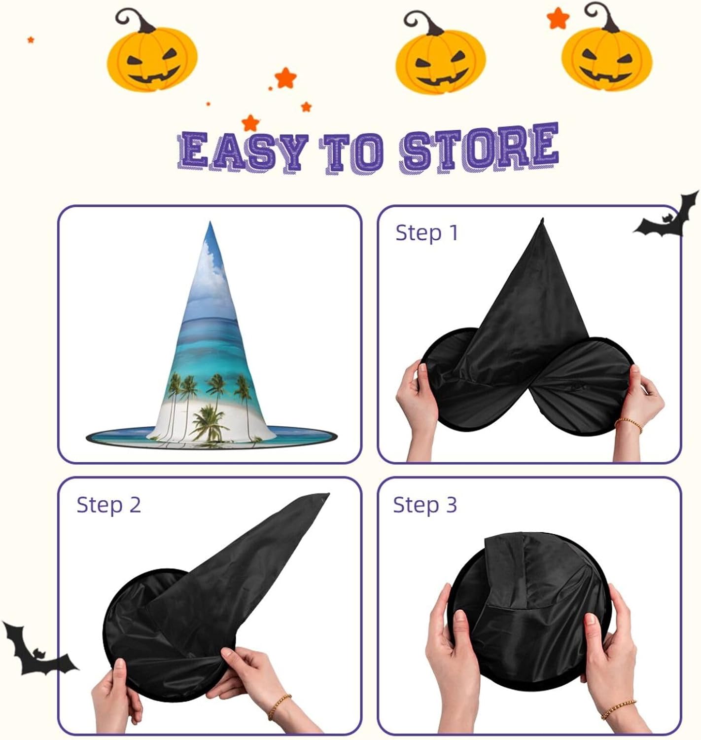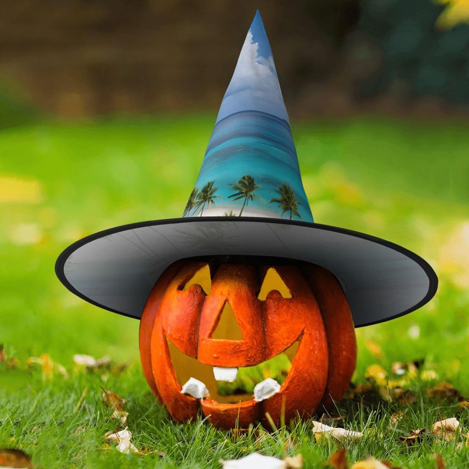 Cappello da strega da donna con guglia a punta, pieghevole, per decorazioni per feste di Halloween, 1 pezzo, spiaggia e palma