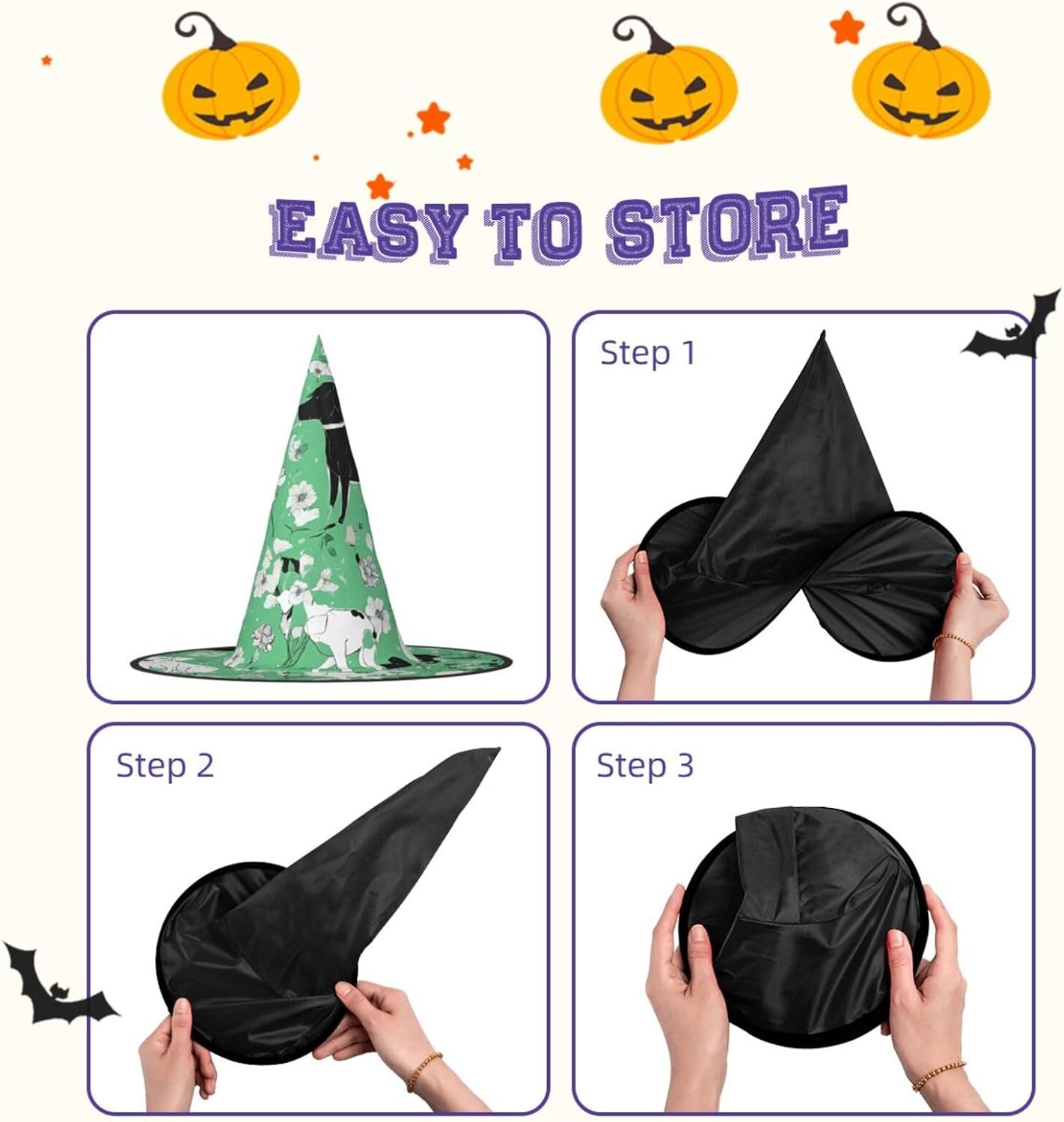 Cappello da strega da donna con guglia a punta, pieghevole, per decorazioni per feste di Halloween, 1 pezzo