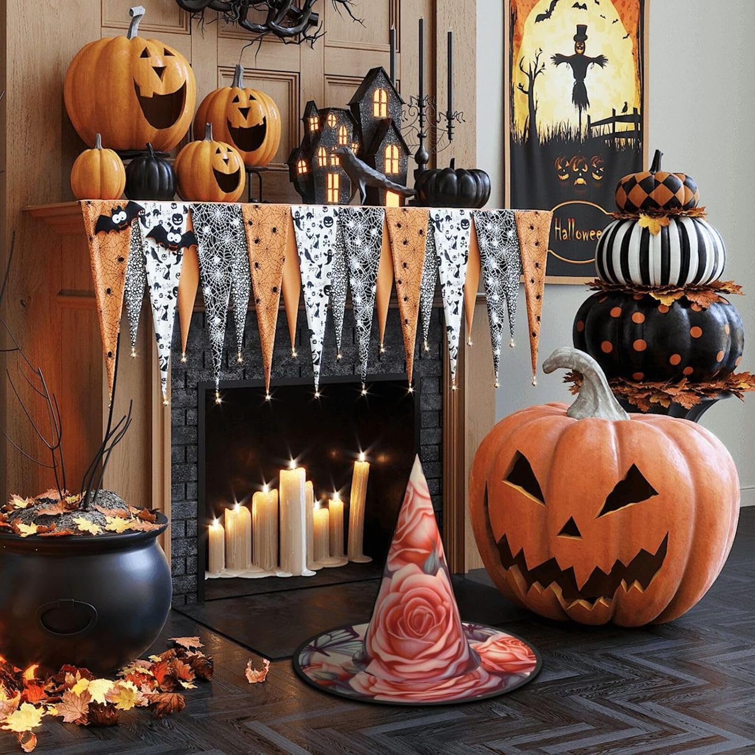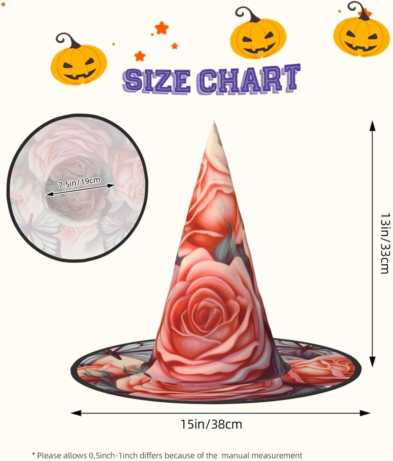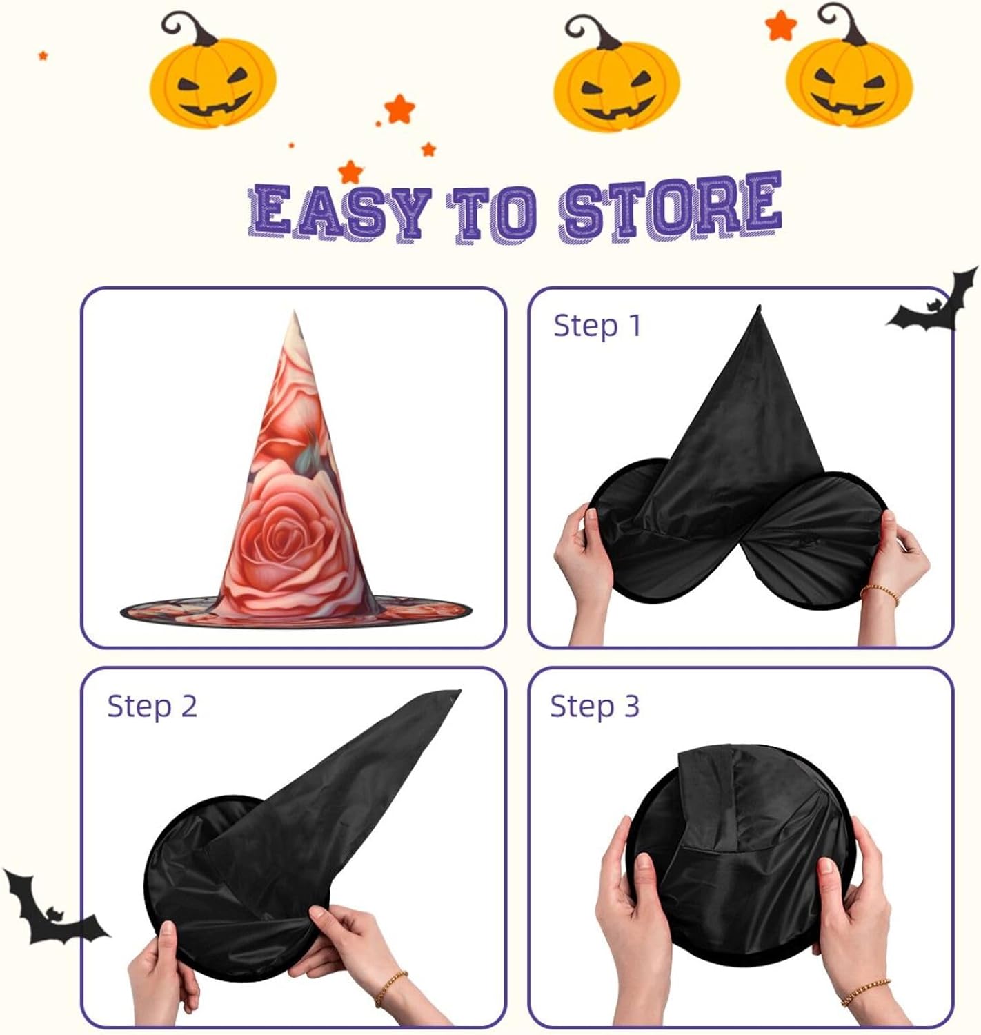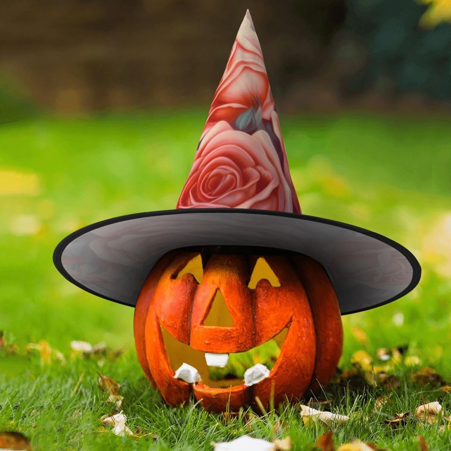 Cappello da strega da donna con guglia a punta pieghevole per decorazioni per feste di Halloween 1 pz - fiore rosa farfalla