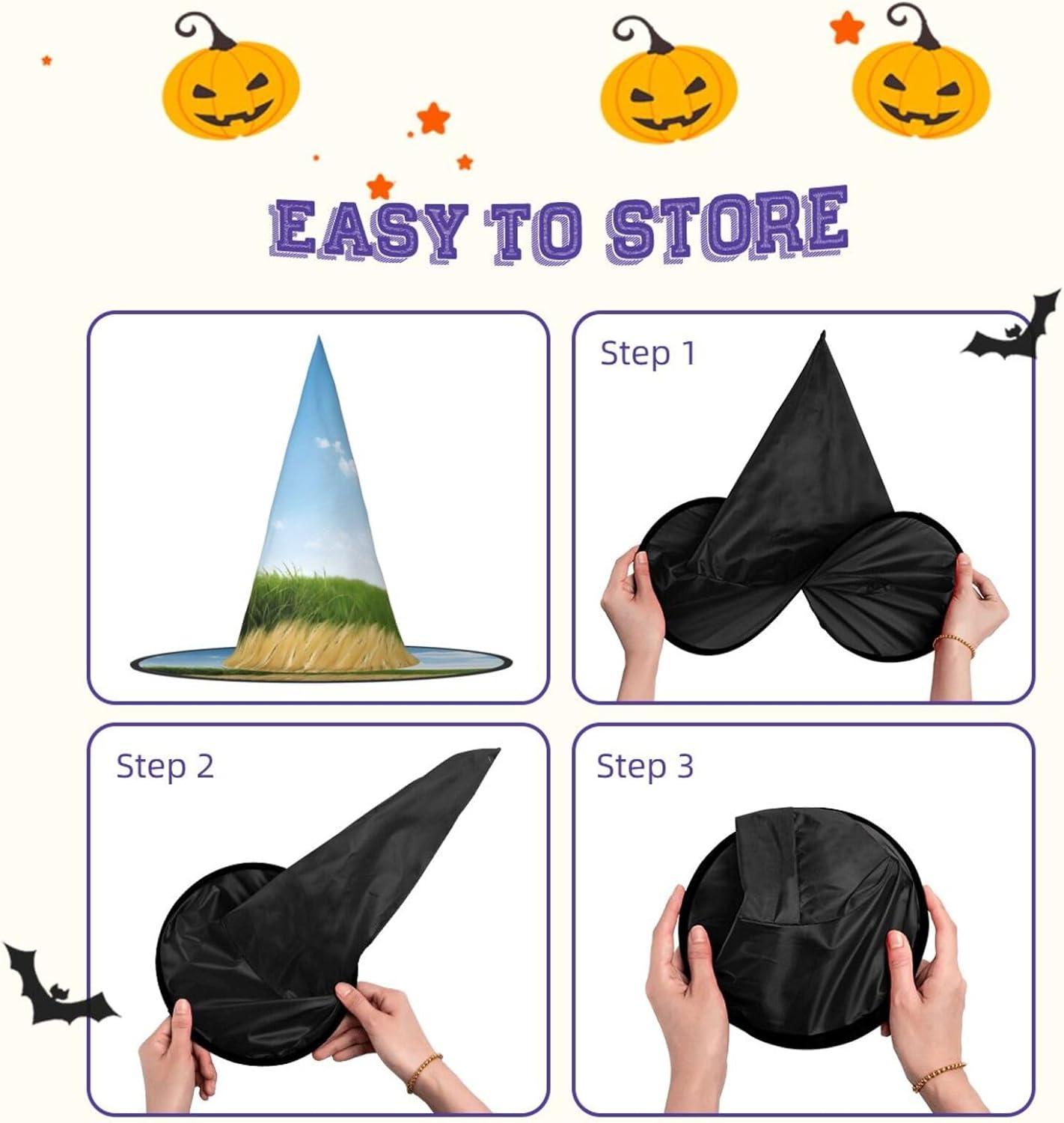 Cappello da strega da donna con guglia a punta pieghevole per decorazioni per feste di Halloween 1PCS - Campo di grano