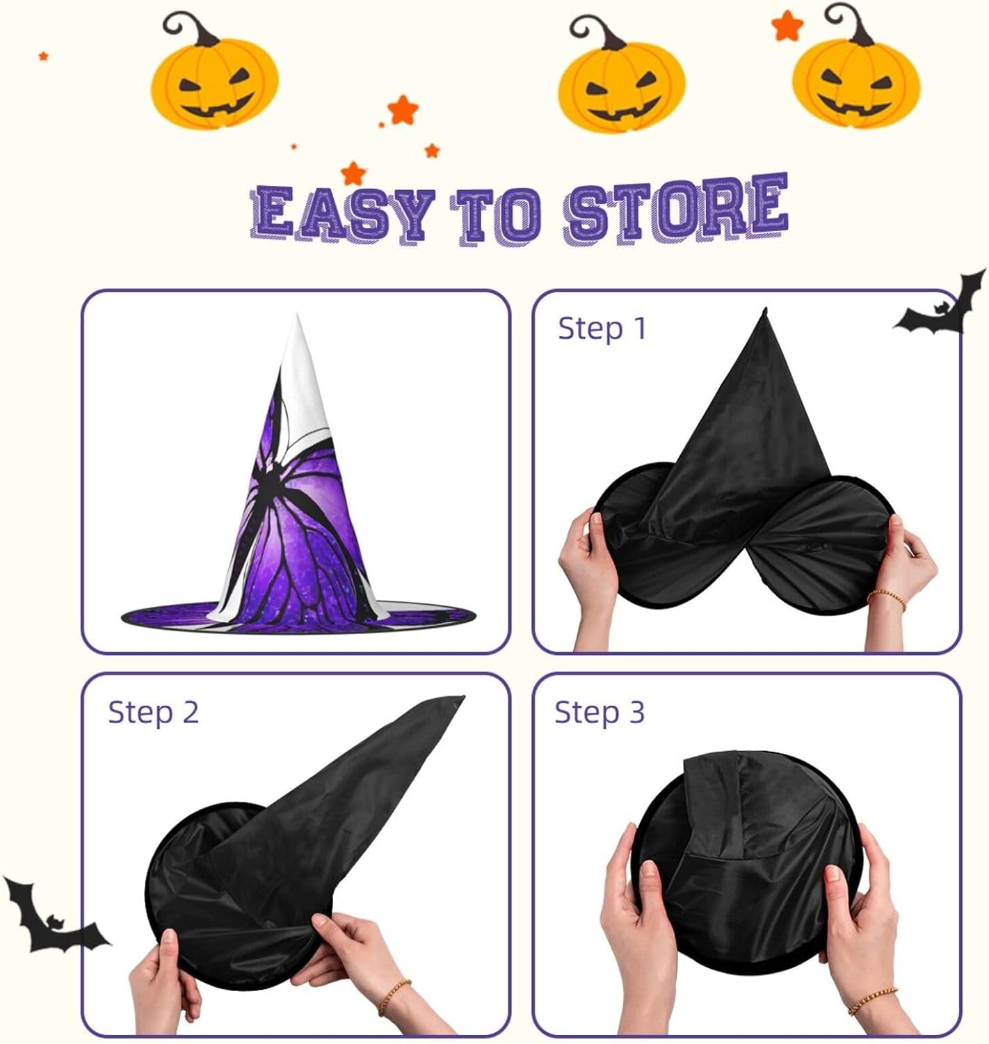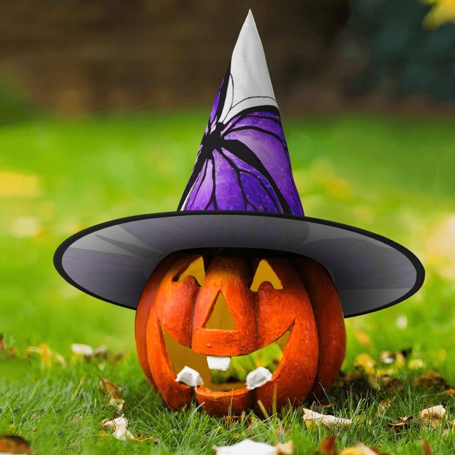 Cappello da strega da donna con guglia a punta pieghevole per decorazioni per feste di Halloween 1PCS - farfalla viola