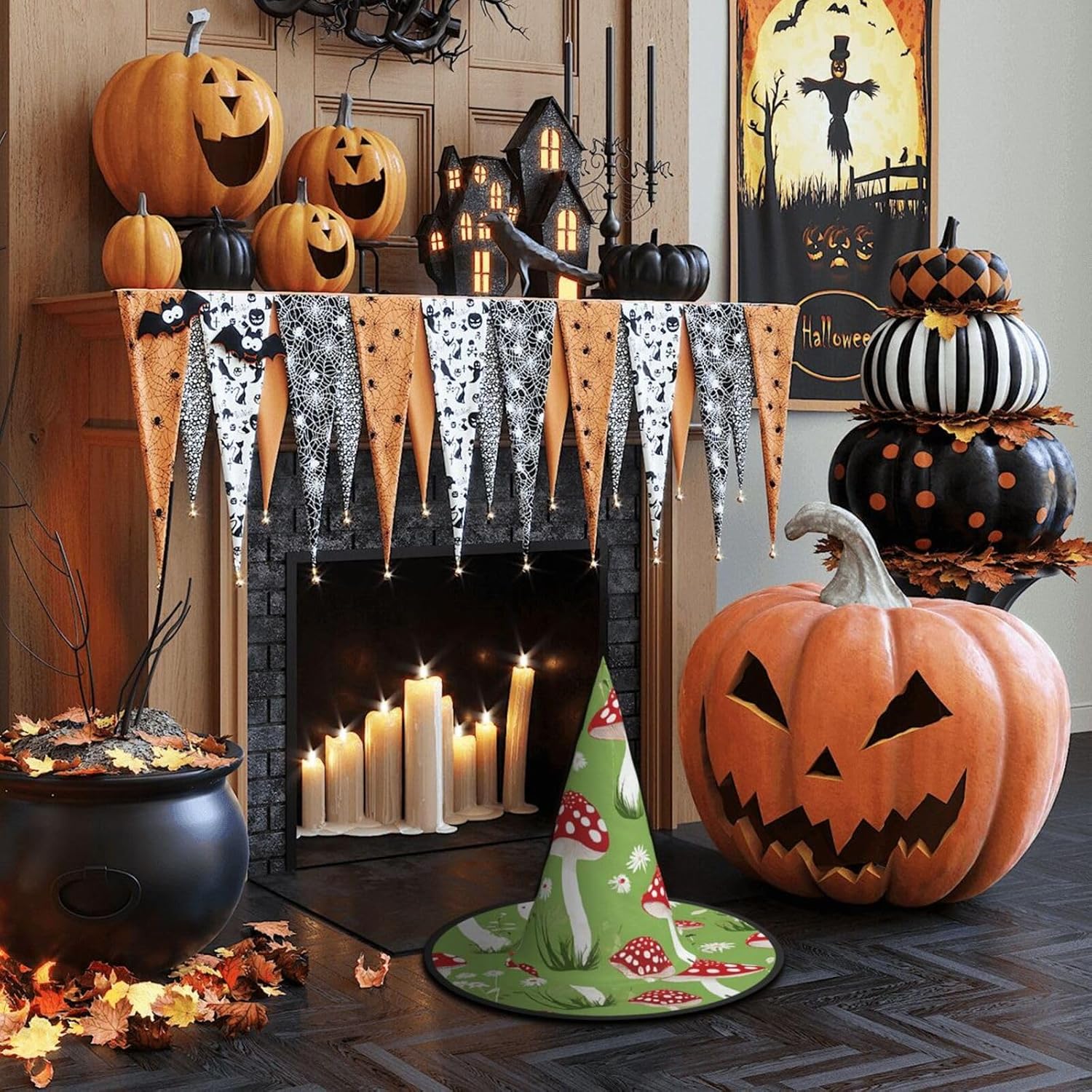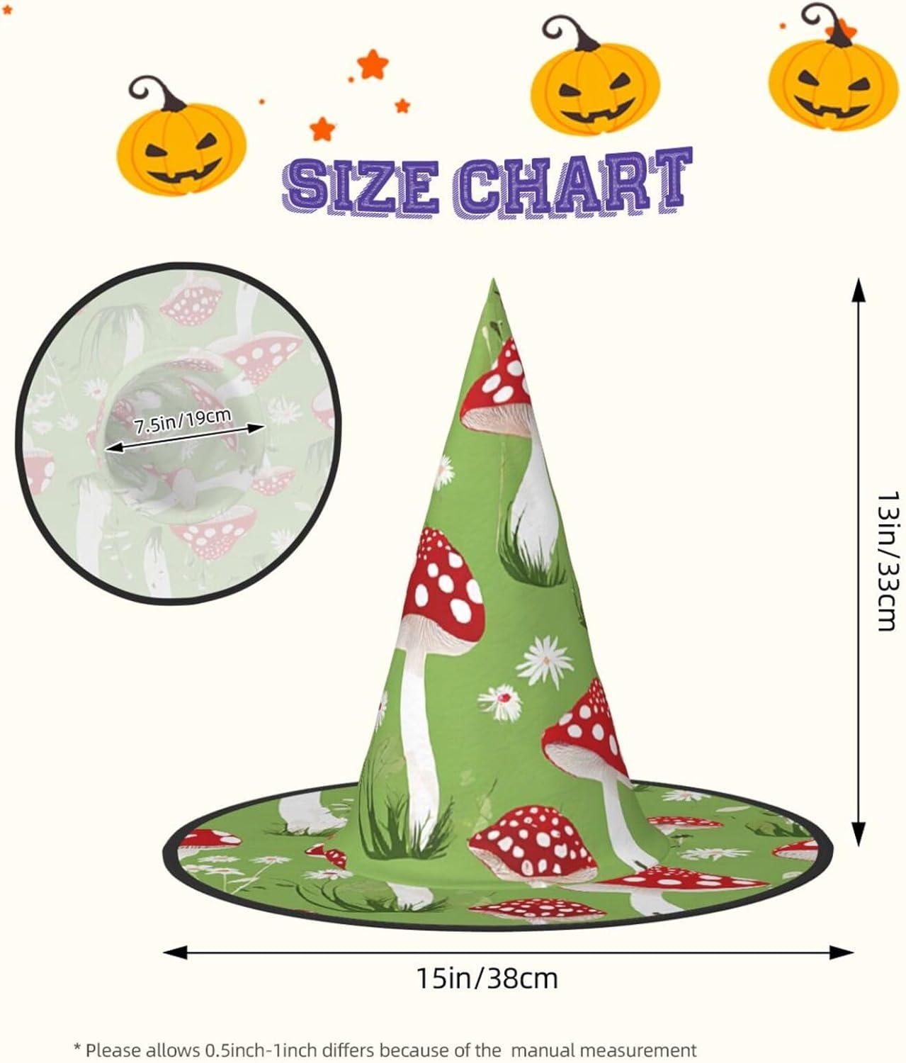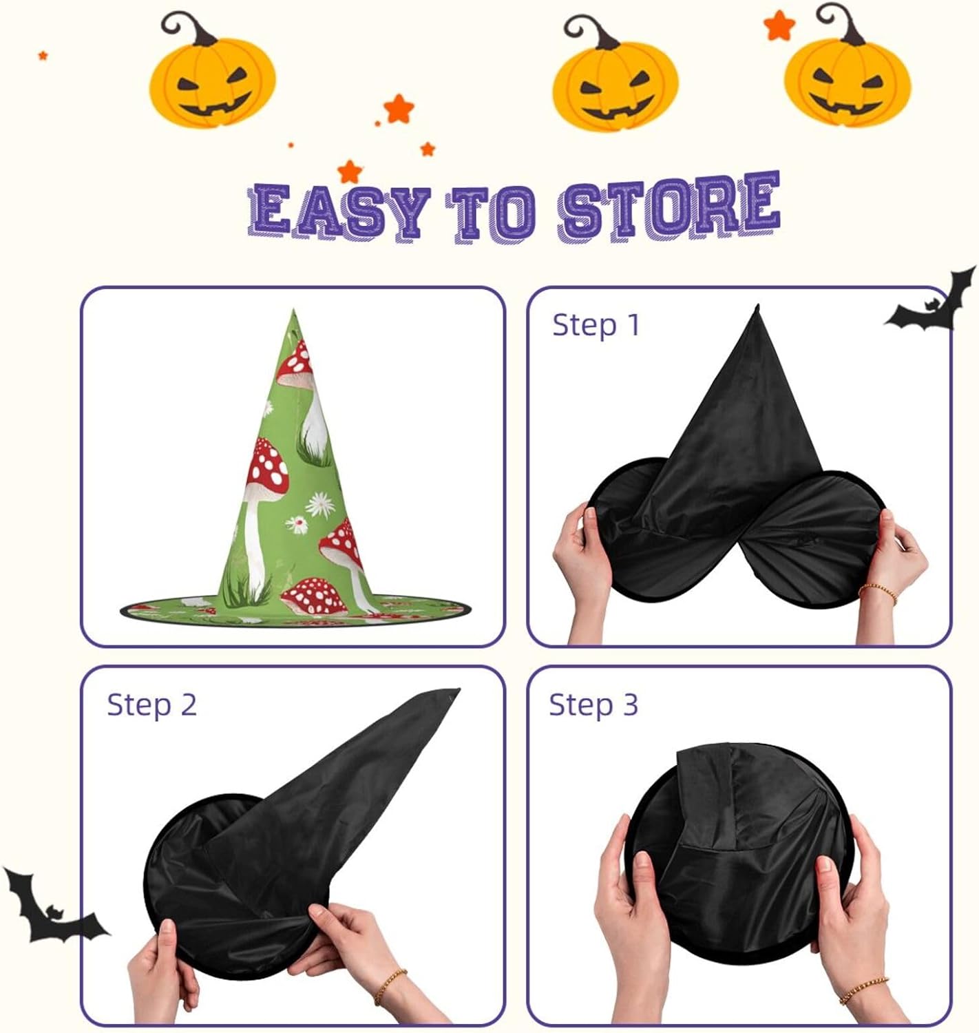 Cappello da strega da donna con guglia a punta pieghevole per decorazioni per feste di Halloween 1PCS - Funghi dei cartoni animati
