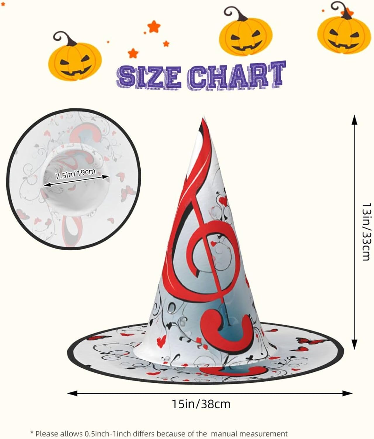 Cappello da strega da donna con guglia a punta pieghevole per decorazioni per feste di Halloween 1PCS - Motivo musicale