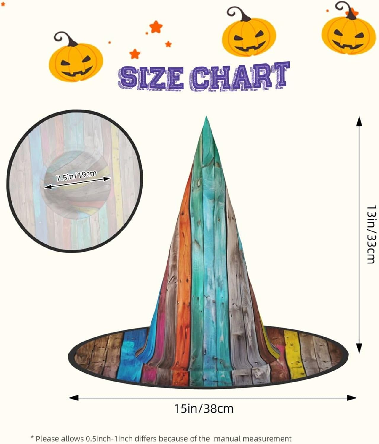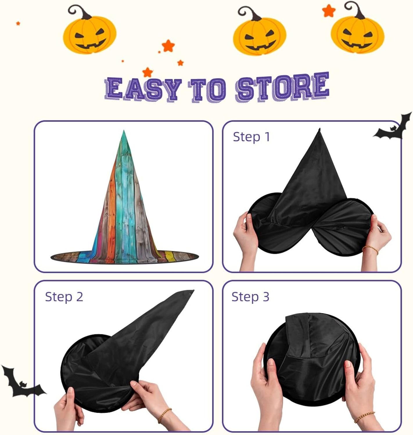 Cappello da strega da donna con guglia a punta pieghevole per decorazioni per feste di Halloween 1PCS - Striscia arcobaleno colorata