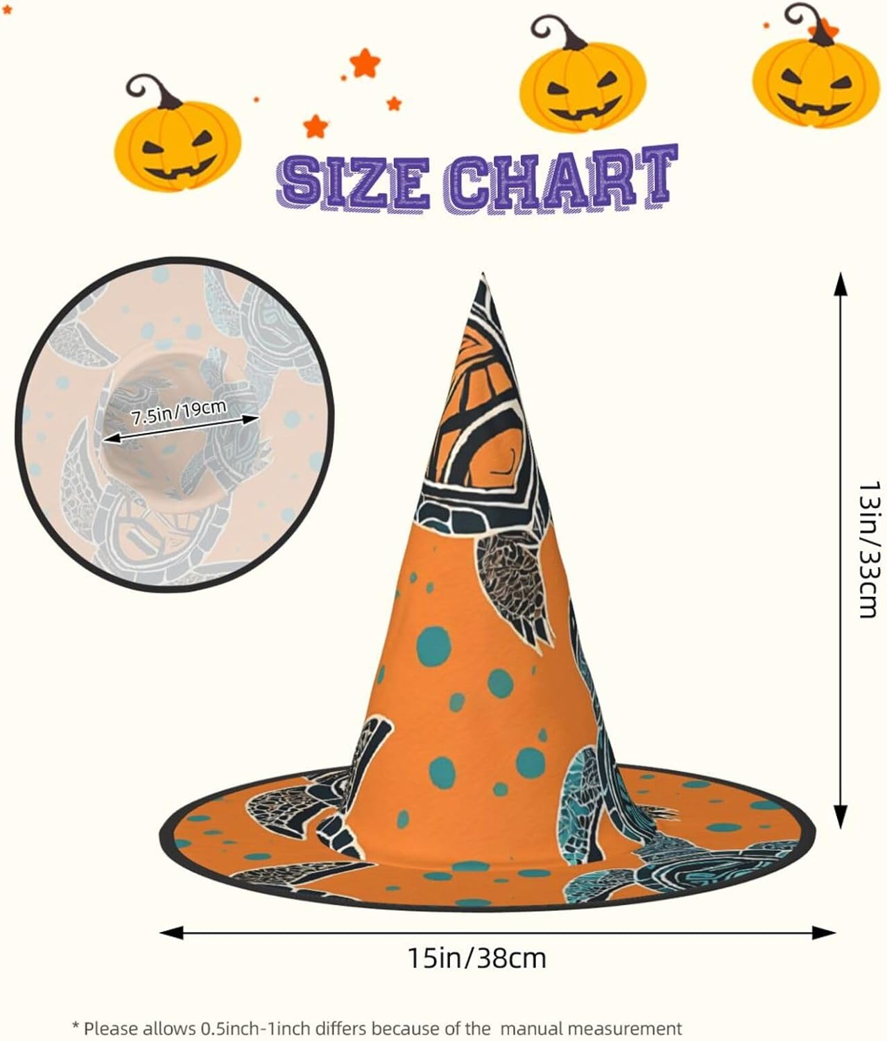 Cappello da strega da donna con guglia a punta pieghevole per decorazioni per feste di Halloween 1PCS - Tartaruga marina cartone animato