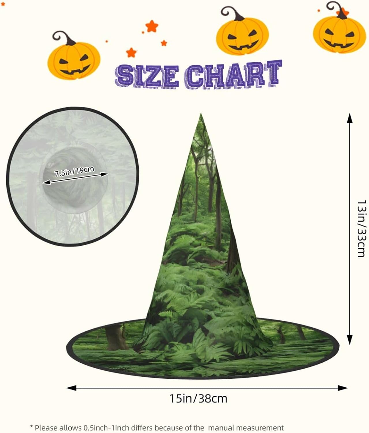 Cappello da strega da donna con guglia, pieghevole, a punta, per decorazioni per feste di Halloween, 1 pezzo - Foresta pluviale