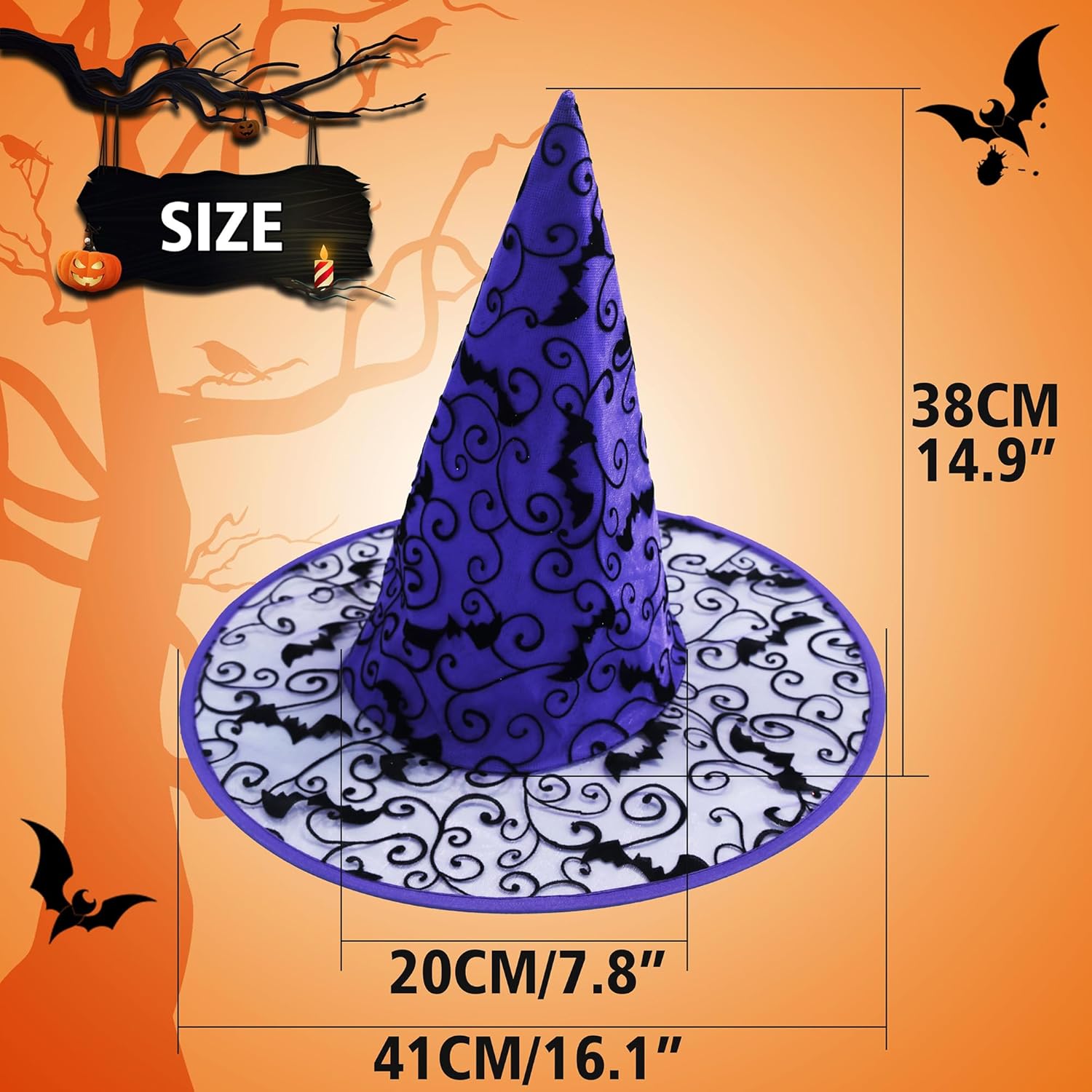 CONFEZIONE DA 2. La confezione contiene un cappello da strega nero e un cappello da strega viola. TAGLIA IDEALE: Taglia unica adatta alla maggior parte di adulti e adolescenti. Altezza: 38 cm, Diametro esterno: 41 cm, Diametro interno: 20 cm. REALIZZATI CON QUALITÀ: I cappelli sono resistenti e non si strappano facilmente. Miglioramento: Abbiamo aumentato le dimensioni del cappello dal 2022. (Diametro interno +1 cm, Diametro esterno +1 cm, Altezza +1 cm). IDEA REGALO PERFETTA: Perfetto per amici, famiglia. Questo cappello per costumi è ideale per spettacoli, feste private, festival, eventi cosplay e Halloween. USO VERSATILE: I nostri cappelli da strega sono un'ottima aggiunta per costumi di Halloween, travestimenti natalizi e altre feste a tema. Si abbina a qualsiasi costume da strega o personaggio dei cartoni animati.