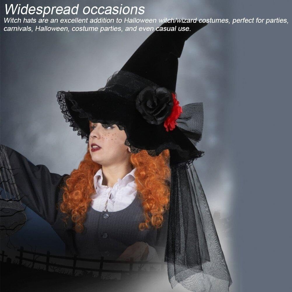 Migliora il tuo stile con questo classico cappello da strega nero, regola le dimensioni e le rifiniture in pizzo. Ottimo copricapo per qualsiasi look da strega. Questo cappello da strega presenta caratteristici design barocchi, garantendo comfort e traspirabilità, perfetto per le feste a tema Halloween. Ideale per le persone che apprezzano i copricapi alla moda, questo cappello da strega aggiunge fascino al tuo outfit durante le feste da ballo. Utilizza materiale in tessuto, questo cappello da strega nero offre una vestibilità comoda e regola le dimensioni per diverse dimensioni. Che si tratti di un costume di Halloween, questo cappello da strega completa vari abiti, adatti per feste e spettacoli.