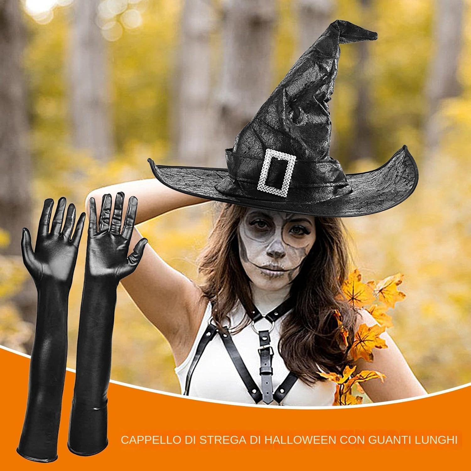 Descrizione prodotto Descrizione del prodotto dalla tua parte con il nostro cappello da strega di Halloween da donna, progettato per elevare il tuo costume con la sua classica forma appuntita e l'elegante colore nero. Questo cappello, perfetto per feste di Halloween, eventi cosplay servizi fotografici a tema, viene fornito con un paio di guanti lunghi per completare il tuo look da strega mago. Realizzato con materiali leggeri, garantisce comfort per tutta la notte mentre la sua dimensione regolabile si adatta comodamente a una vasta gamma di dimensioni della testa. Che tu sia un'adolescente un'adulta, questo cappello versatile aggiunge un tocco di incanto a qualsiasi costume, rendendolo un accessorio indispensabile per le tue feste di Halloween. Specifiche: Materiale: pelle artificiale Taglia del prodotto: Taglia del cappello: Altezza: 33 cm/13 pollici Fondo: diametro 42,5 cm/16,5 pollici Lunghezza dei guanti: 53 cm/20,9 pollici Peso: ca. 130 g Lista imballaggio: 1 * Cappello da strega 1 paio * Guanti lunghi Nota: A causa delle diverse impostazioni di illuminazione e schermo, il colore 'articolo potrebbe essere leggermente diverso dall'immagine. A causa delle diverse misurazioni manuali, si prega di consentire una differenza di dimensioni di 1-2 cm. Avviso di sicurezza Non applicabile