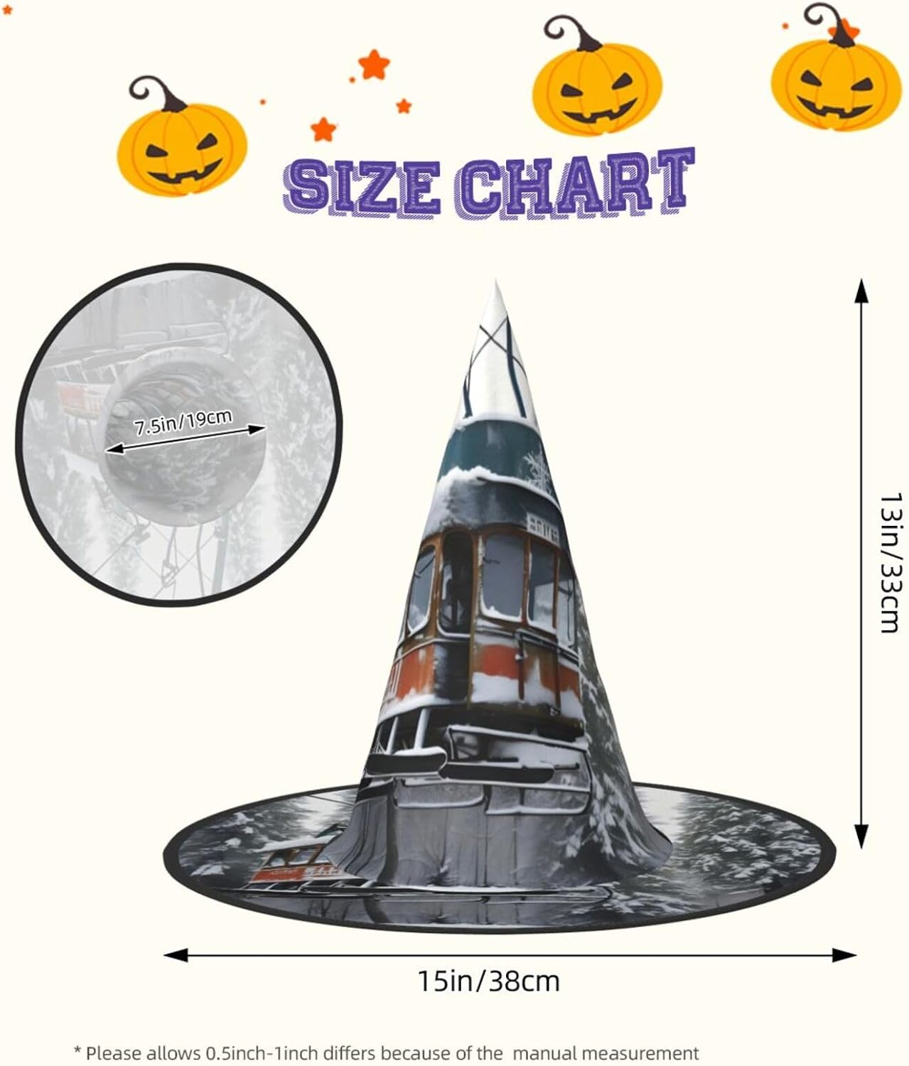 Questo cappello invernale di Halloween con stampa di impianti di risalita da sci è una miscela unica di comfort e stile, realizzato in tessuto Oxford. Il suo design compatto e leggero lo rende per portarlo in giro senza il peso. Ha una struttura unica; la parte superiore può essere ridotta e i bordi possono essere attorcigliati e piegati, consentendo una facile conservazione. The Winter Old Cable Ski Lift Print Witch Hat Che si tratti di una festa di Halloween, una festa in maschera o un gioco di ruolo, il nostro cappello è il tuo accessorio perfetto. Al centro dell'attenzione in qualsiasi evento di Halloween. È anche facile da pulire: lavabile in lavatrice o a mano, si asciuga rapidamente e facile da pulire. Scatena la tua strega interiore questo Halloween con i nostri cappelli da strega alla moda e divertenti! Nota: per una migliore cura, evitare la candeggina. Rendi indimenticabile questo Halloween con i nostri cappelli da mago per Halloween!