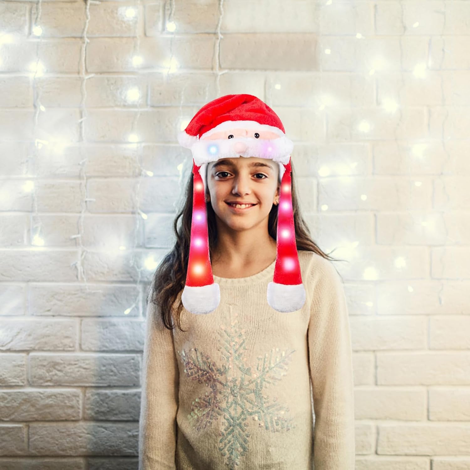 Cappello di Natale, Cappello di Babbo Natale in peluche, Cappello da festa di Natale, Cappello da Babbo Natale, Cappello divertente a LED, con orecchie mobili, Cappello da festa di Natale per Natale, Festa, Compleanni