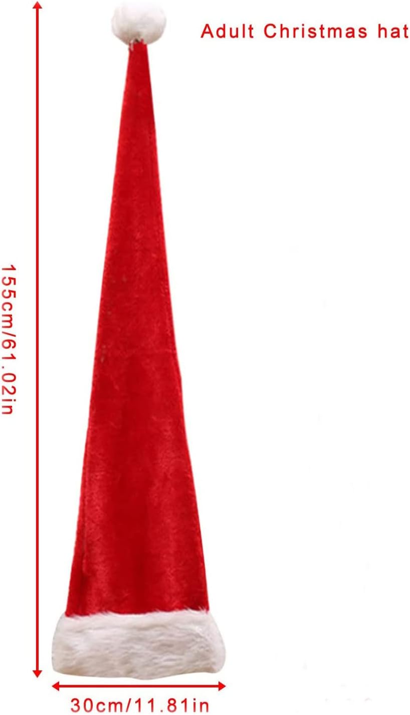 Caratteristiche del prodotto: -Questo cappello natalizio è realizzato in tessuto felpato di alta qualità, super morbido e confortevole, delicato sulla pelle, caldo, comodo e comodo da indossare. - Dimensioni: lunghezza 150 cm/59 pollici * larghezza 30 cm/11,8 pollici, taglia unica adatta alla maggior parte degli uomini e delle donne adulti da utilizzare a Natale o in inverno. -Pieno di atmosfera festosa, è il miglior regalo per la famiglia e gli amici e goditi un meraviglioso Natale con loro. -I cappelli natalizi extra lunghi sono molto interessanti e ti rendono unico. Sono adatti per Natale, Halloween, carnevale, feste, cosplay, spettacoli teatrali, feste di Capodanno, attività all'aperto, ecc. Dettagli del prodotto: Materiale: Peluche Colore: Rosso, Nero Stile: cappello di Natale lungo Dimensioni: 30x150 cm/11,8x59 pollici Circonferenza del cappello: 60 cm/23,6 pollici Peso: 120 g Il pacchetto include: 1 x cappello natalizio per adulti Nota: 1.Si prega di consentire una piccola deviazione e un leggero scolorimento durante la pulizia per la prima volta. 2.Si prega di lavare o stirare la tuta a causa delle rughe. 3.A causa della differenza tra diversi monitor, l'immagine potrebbe non riflettere il colore effettivo dell'articolo. 4.A causa della misurazione manuale, si prega di consentire una differenza di 1-2 cm. GRAZIE!