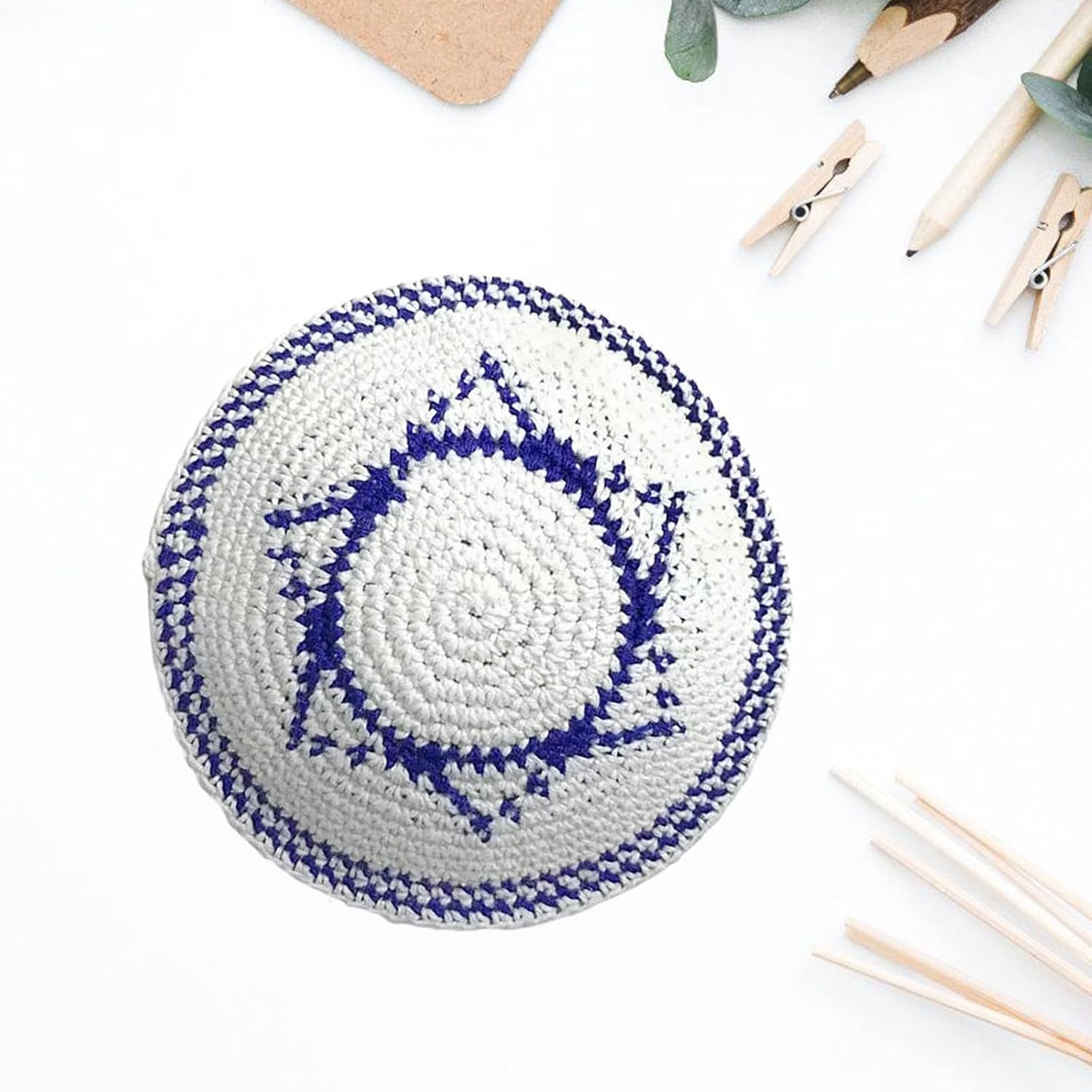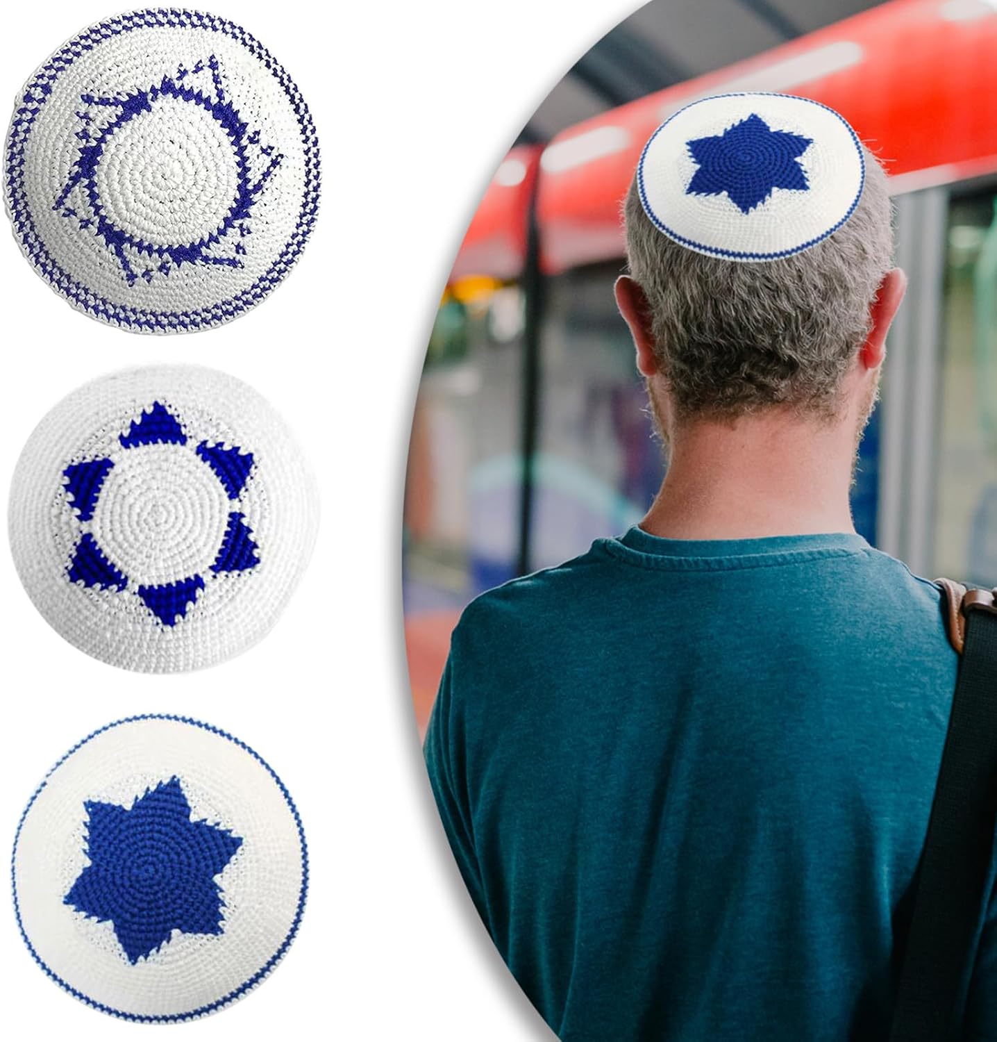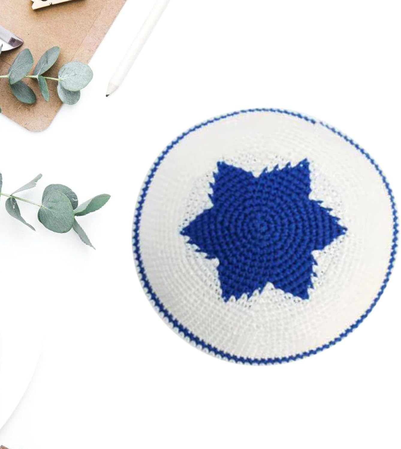 Piccolo cappello rotondo, cappello etnico, cappello ebraico, che mostra la combinazione di personalità e moda. Composto da componenti di buona qualità, confortevole e durevole; il motivo a stella blu aggiunge un tocco di luce. Misura regolabile adatta a diverse circonferenze della testa. Adatto per i giovani che amano perseguire stili unici, soprattutto quelli che preferiscono gli stili di cappello ebraico. Adatto per varie occasioni di svago come feste, festival musicali e viaggi, aggiungendo senso di moda e personalità al look generale.