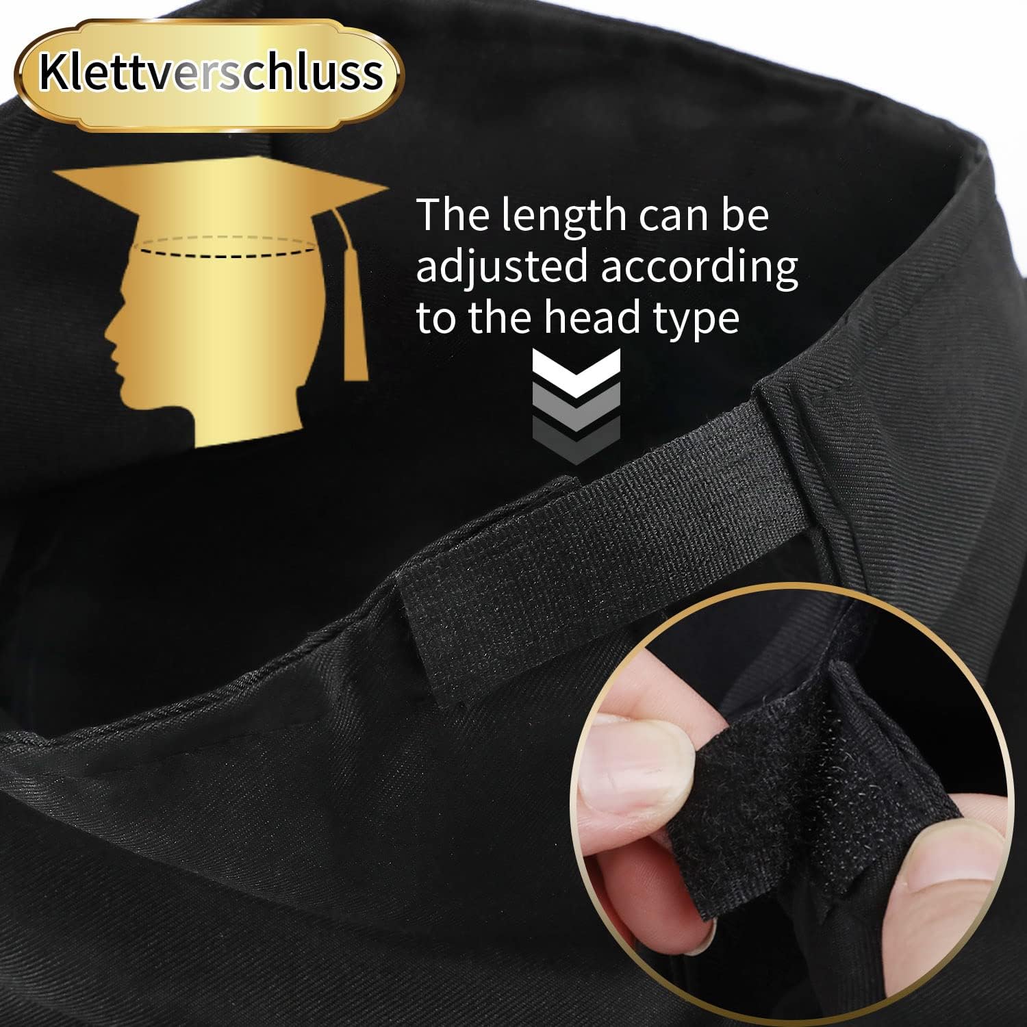 Der Hut wirkt überraschend hochwertig: fester Karton, sauber bezogen, tiefschwarz und mit einer schön fallenden Quaste. Die Größe ließ sich schnell anpassen und er saß selbst nach mehreren Stunden noch bequem, ohne zu verrutschen. Besonders gut gefallen hat mir, dass er auf Fotos richtig edel aussieht, kein Glanzfleck, keine schiefen Nähte. Lieferung kam gut verpackt, der Hut war sofort einsatzbereit und nicht verbeult oder so. Für den Preis ein top Preis-Leistungs-Verhältnis und ein tolles Erinnerungsstück an den Abschluss für meine Freundin. Klare Kaufempfehlung!