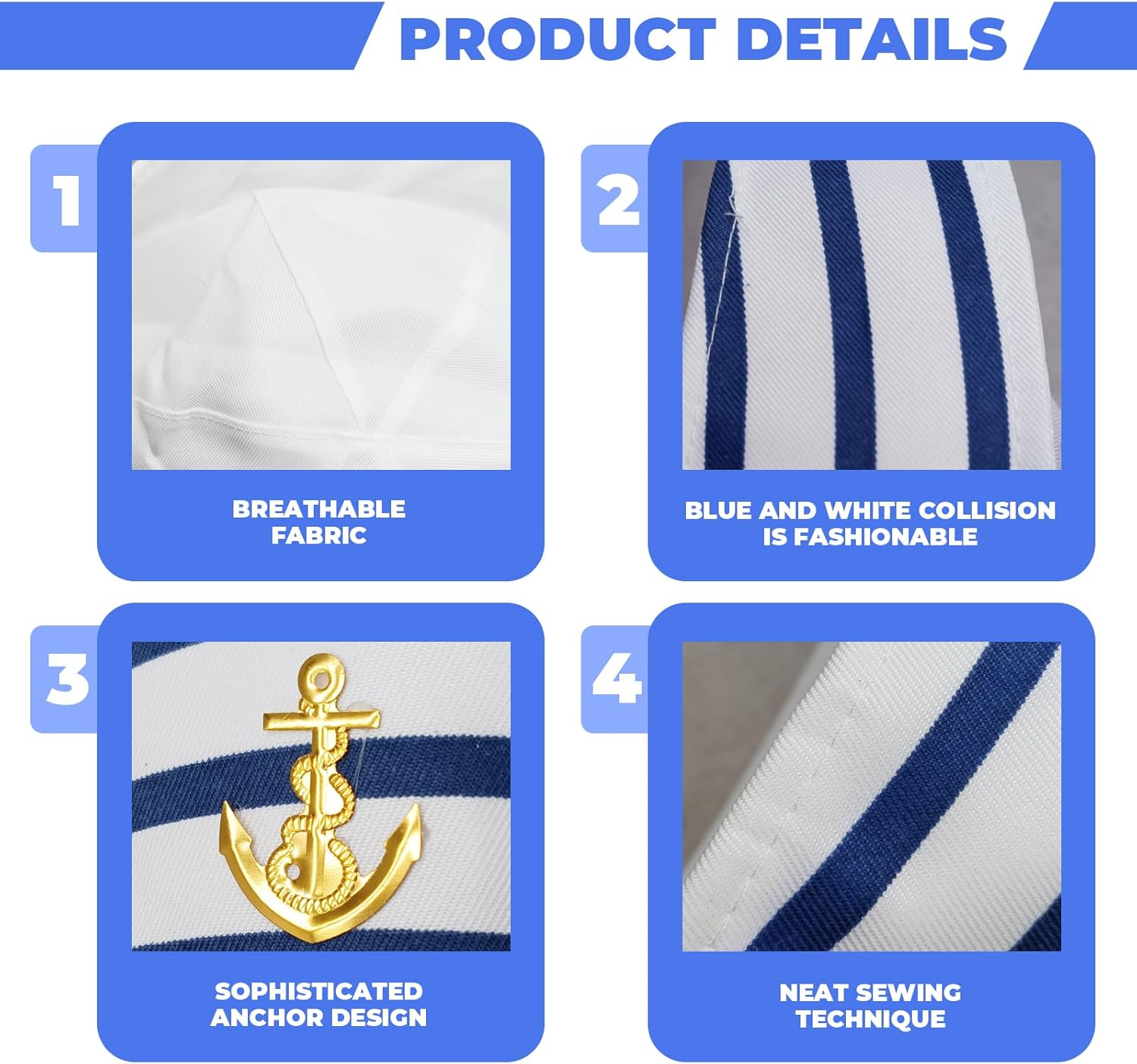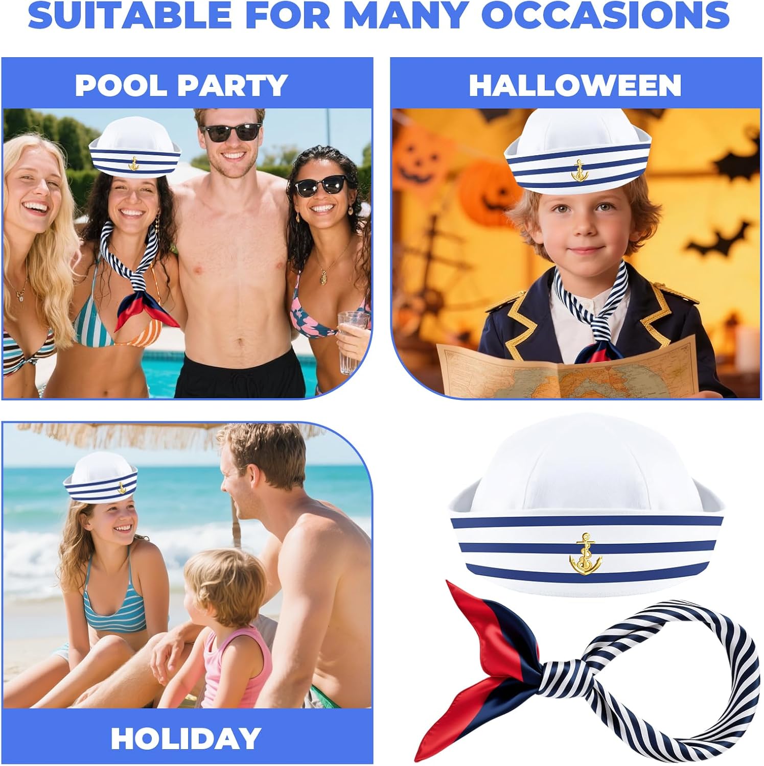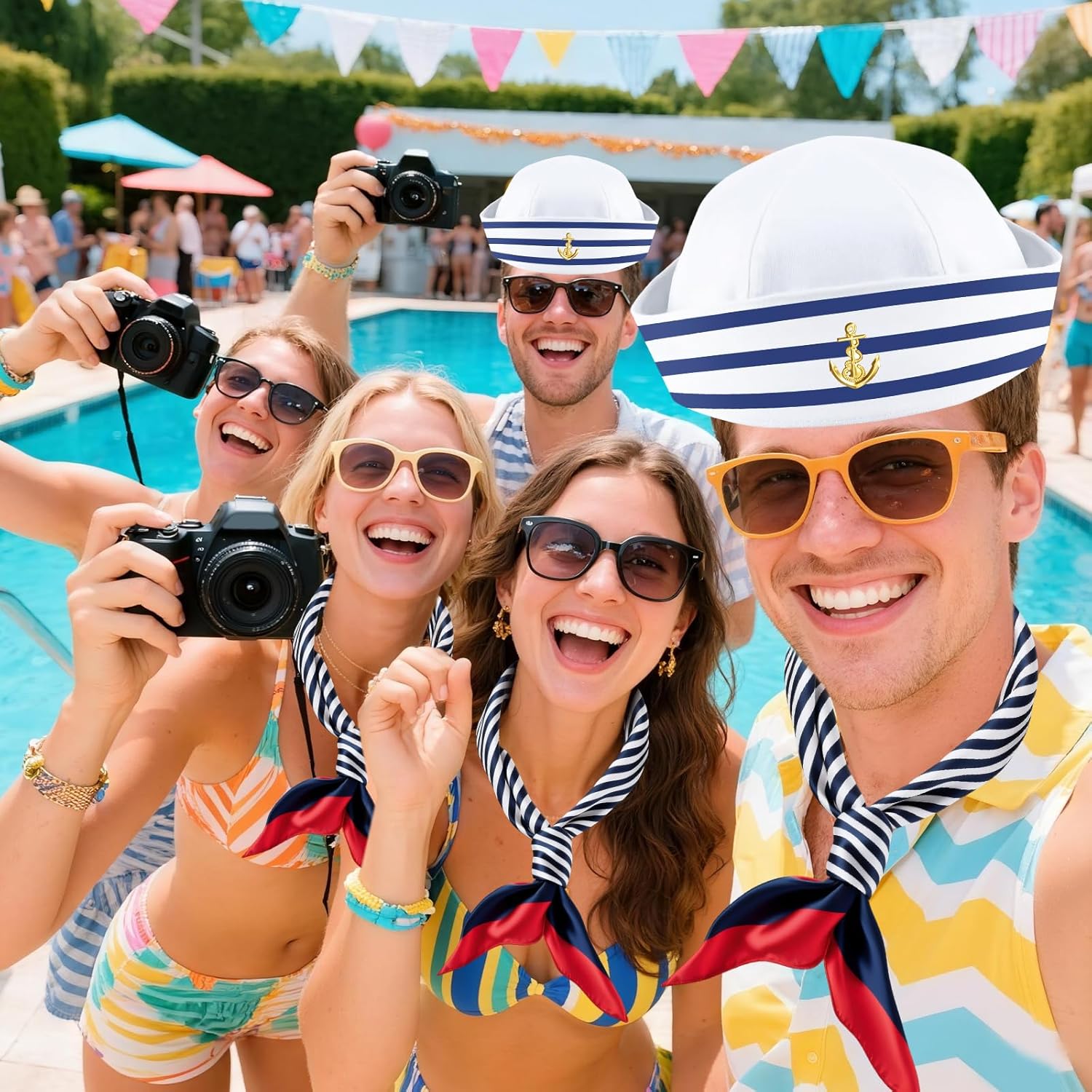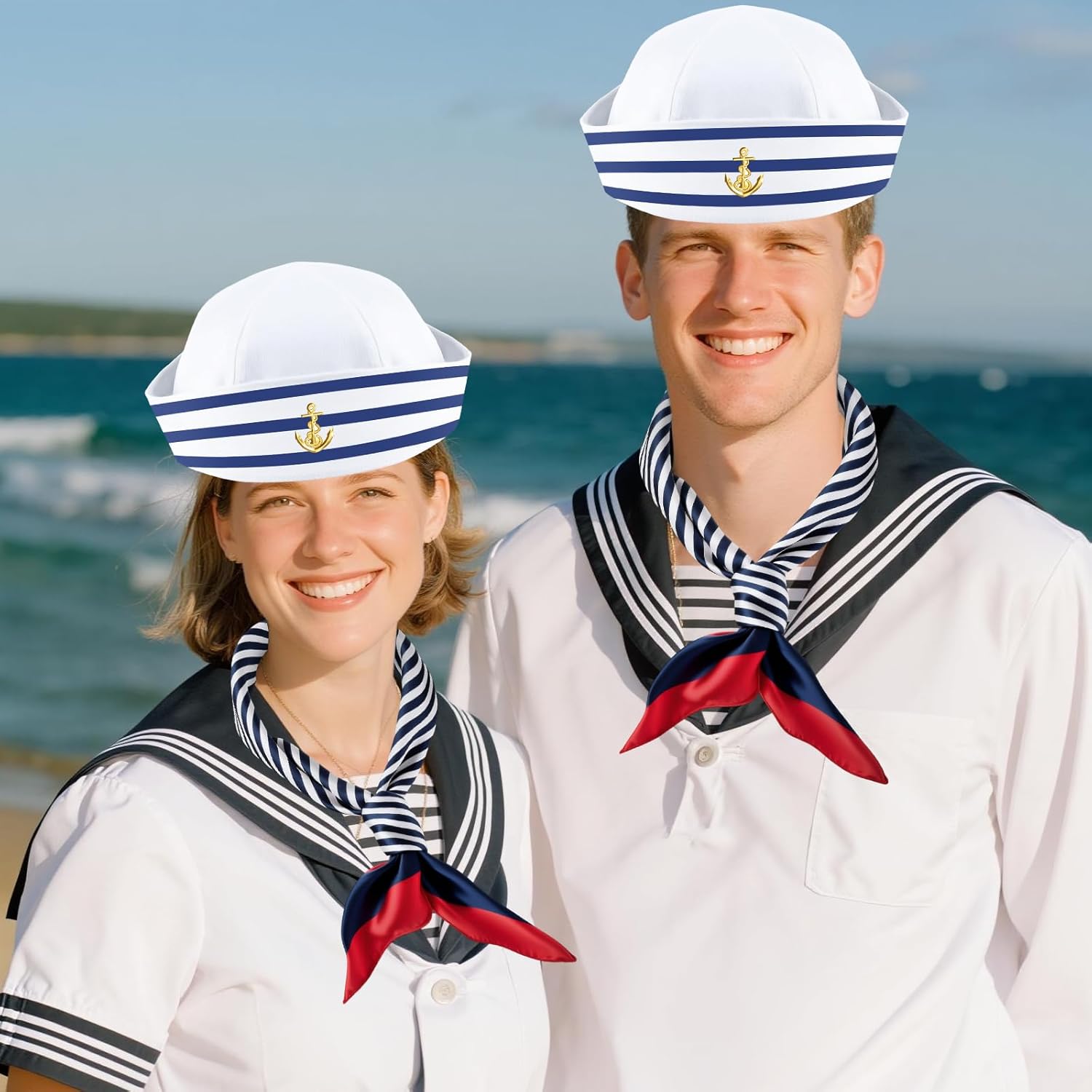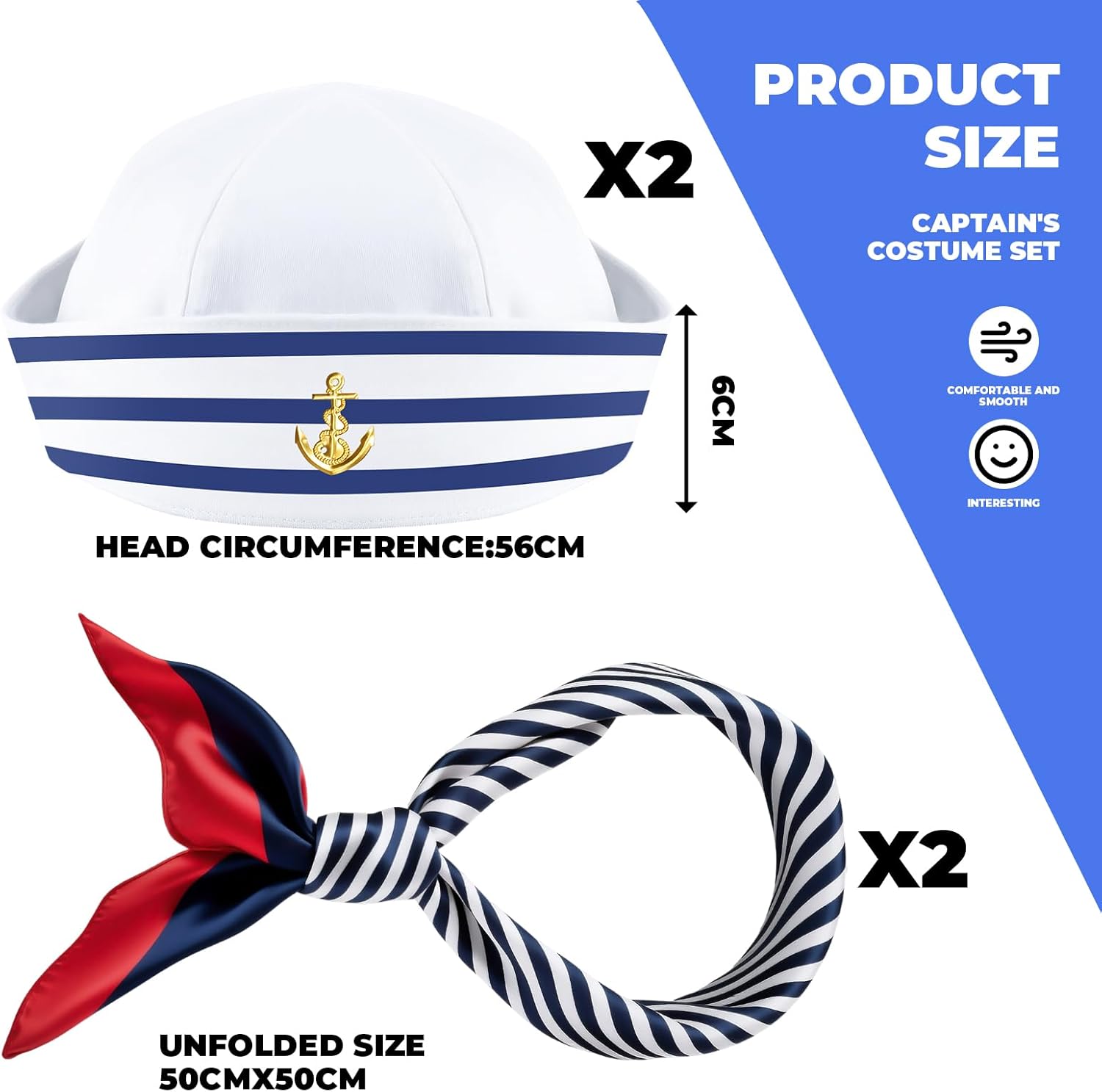 Descrizione prodotto Immergiti nelle avventure marittime! Il nostro set di costumi da marinaio premium combina un autentico cappello da marinaio e un'elegante sciarpa di seta. Il cappello da capitano da uomo/donna (circonferenza 56 cm) con fascia interna regolabile e il classico design da barca a vela offrono un'efficace protezione solare durante gli eventi all'aperto. Realizzato in poliestere delicato sulla pelle per il massimo comfort, anche durante le lunghe feste. I tuoi vantaggi: Un vero stile nautico: diventa il centro dell'attenzione a feste in barca, carnevali o matrimoni in spiaggia con questo abbigliamento da marinaio per donna e uomo. Pratica protezione solare: la visiera extra lunga (7,5 cm) protegge durante le gite in barca a vela o gli eventi all'aperto. Set regalo perfetto: include 2 cappelli + 2 sciarpe (blu/bianche) in una confezione premium, ideale per gruppi di equipaggi o appassionati di nautica. Dettagli tecnici: Materiale: Poliestere traspirante (cappello), seta liscia (sciarpa) Colore: Blu navy con strisce bianche Peso: 120 g (per set) Contenuto della confezione: 2 cappelli da marinaio + 2 sciarpe (50 x 50 cm) Nota: Sono possibili lievi variazioni di colore. Tolleranza dimensionale: ±1 cm. Avviso di sicurezza no
