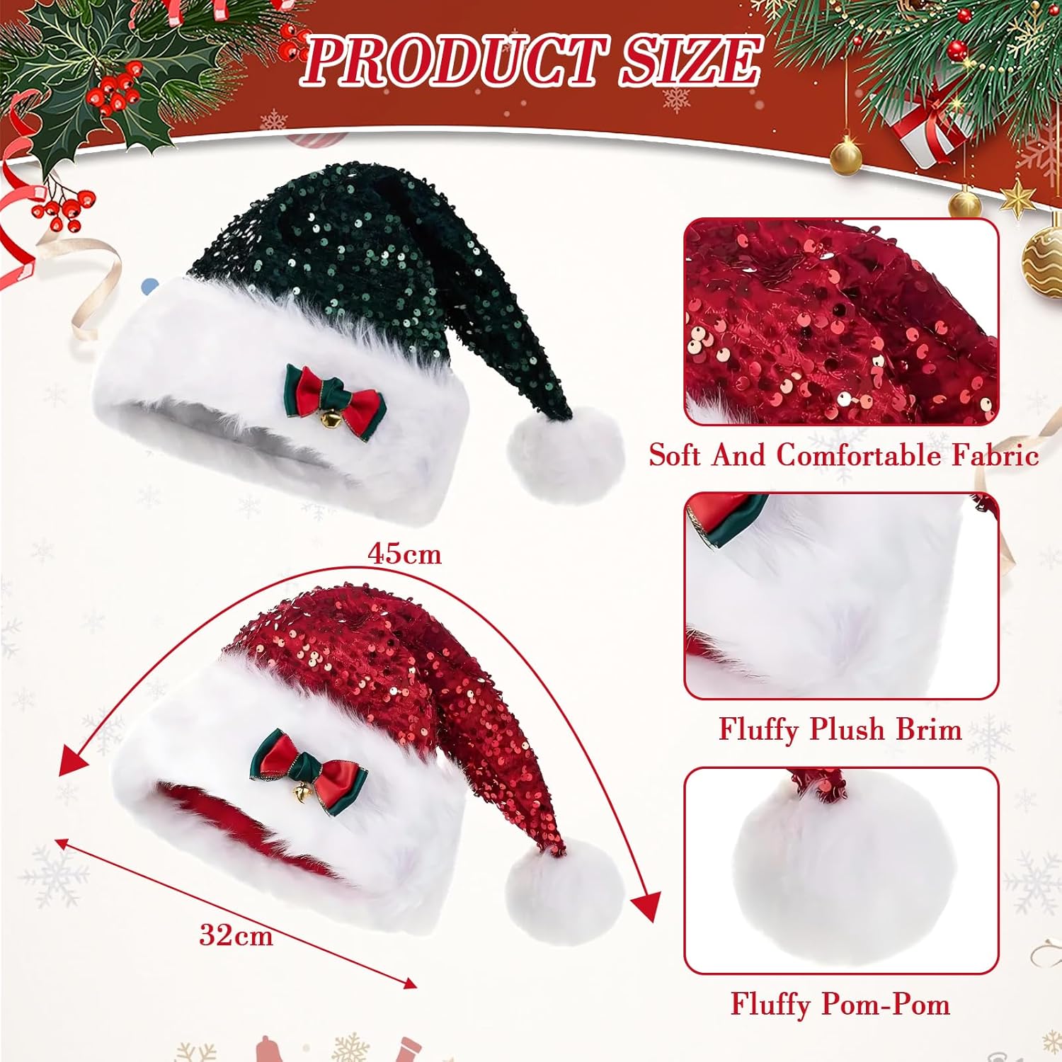 Descrizione prodotto Caratteristiche del prodotto: Quantità: 2 cappelli natalizi Materiale: tessuto e paillettes di alta qualità Caratteristiche: Design versatile: questo cappello natalizio non è solo l'aggiunta perfetta al tuo outfit da vacanza, ma offre anche molte pratiche possibilità di utilizzo. Il cappello natalizio con paillettes può essere utilizzato come cappello caldo per l'uso quotidiano o come supporto fotografico per dare alle foto un'atmosfera divertente e festosa. Facile da indossare: questo cappello natalizio da donna è leggero e facile da piegare, il che lo rende comodo da trasportare. Il cappello da Babbo Natale per adulti è perfetto da portare in viaggio o in viaggio e ti mantiene caldo e alla moda sempre e ovunque. Precauzioni per l'uso: Conservazione: conservare questo cappello natalizio in un luogo asciutto e ben ventilato e proteggerlo dalla luce solare diretta e dalle alte temperature per evitare sbiadimenti e deformazioni. Errore di misurazione: le dimensioni del cappello di Babbo Natale sono misurate manualmente e possono variare. Per la precisione, fare riferimento al prodotto reale. Avviso di sicurezza n