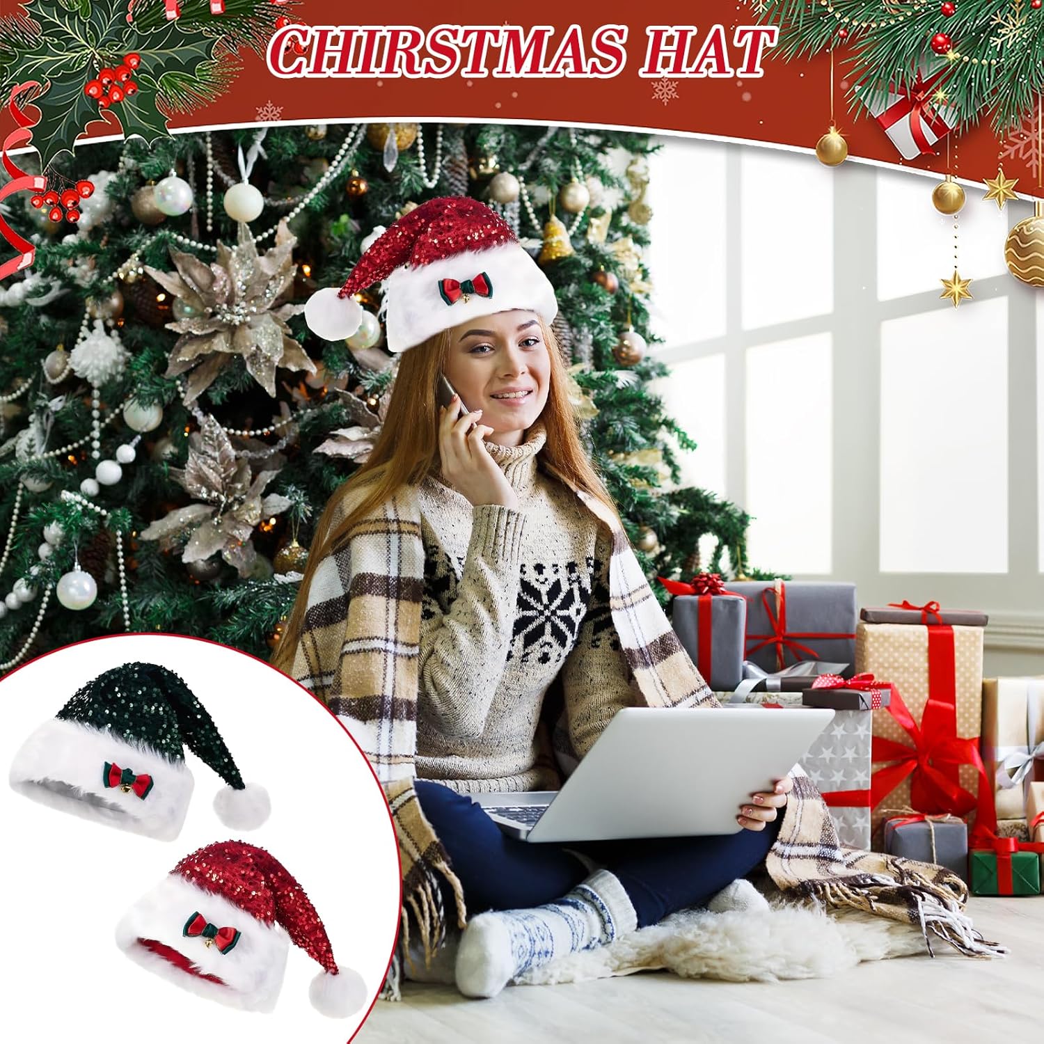Cappello natalizio 2 articoli - Cappello natalizio glitterato con visiera glitterata e in peluche per decorazione natalizia per albero di Natale - Albero di Natale