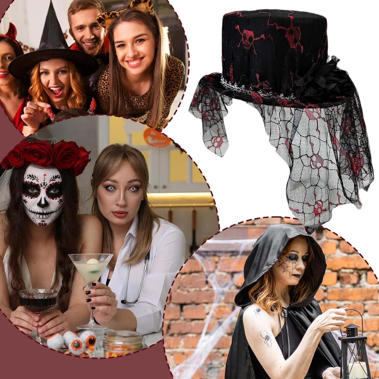 Realizzato senza deformazioni e decorato con una rete a teschio e un design ispirato al carnevale, questo accessorio è adatto per creare un'atmosfera spaventosa. Inoltre, può essere utilizzato anche come decorazione per interni ed esterni, rendendolo un'aggiunta versatile alla tua collezione. Specifiche: Materiale: feltro + rete. Circonferenza della testa applicabile: circa 56-60 cm. Dimensioni del prodotto: come da immagine. Peso: circa 120 g Contenuto della confezione: 1 cappello per Halloween